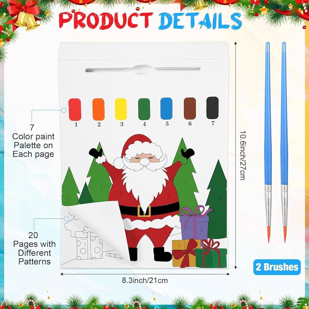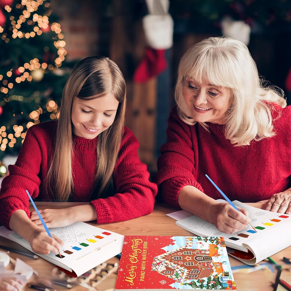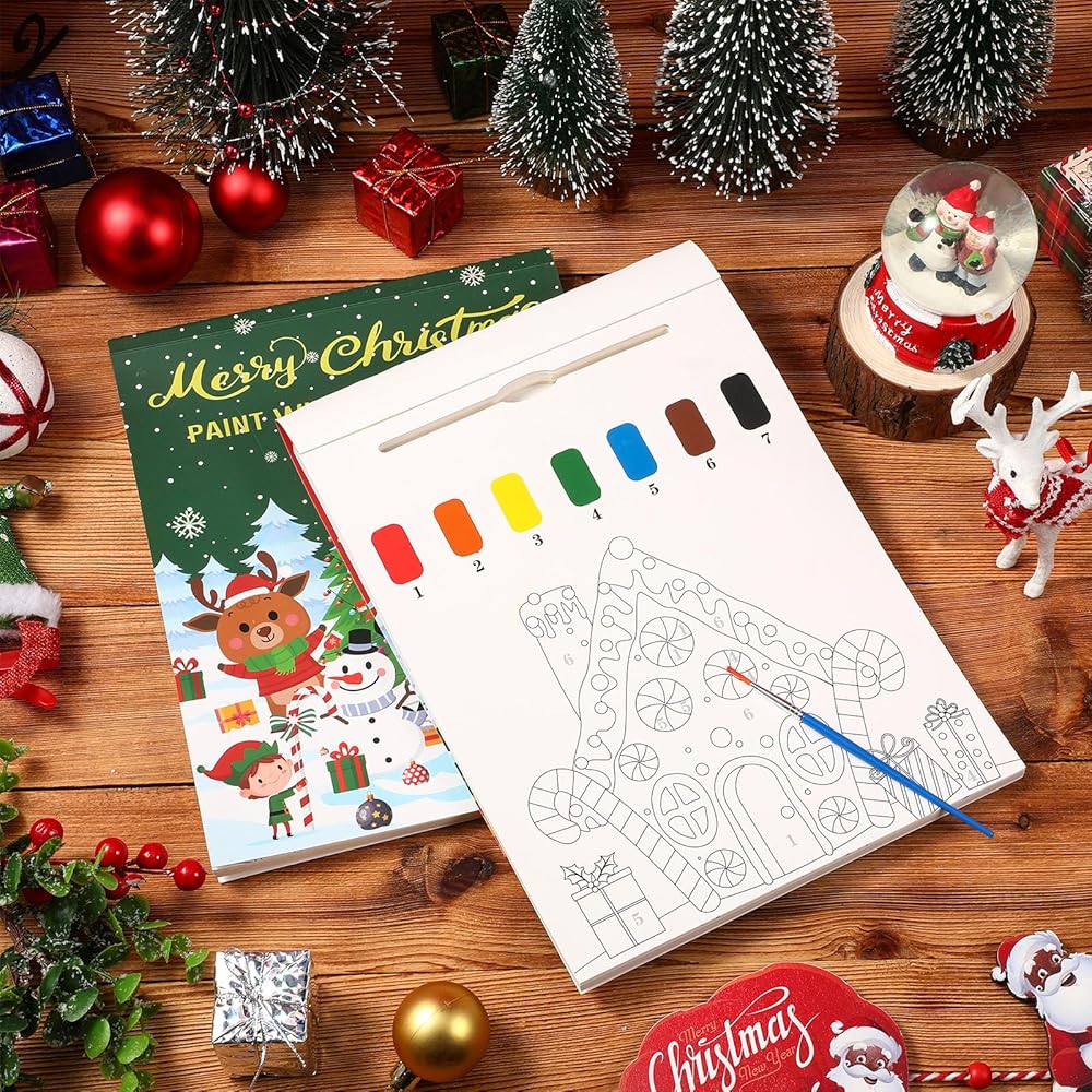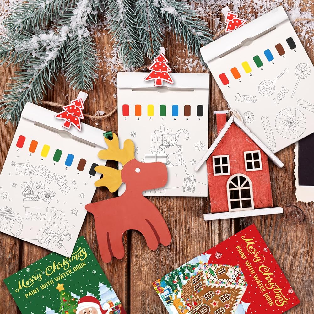 قطعتان من طلاء عيد الميلاد مع كتب تلوين مائية من Pasimy، كتب رسم بالألوان المائية لعيد الميلاد، مستلزمات تخزين عيد الميلاد، هدايا تلوين، هدايا عيد الميلاد، هدايا أنشطة عيد الميلاد