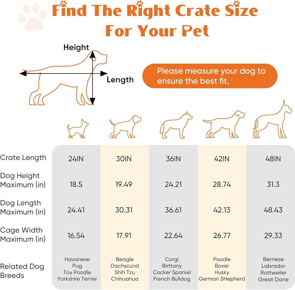 Elevon Foldable Double Door Dog Crate with Leak-Proof Tray, Multiple Sizes