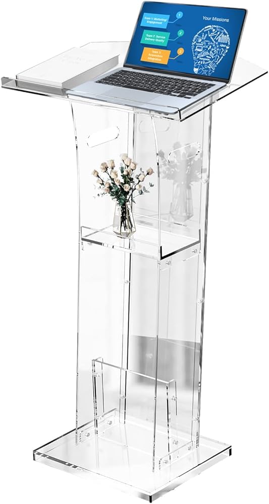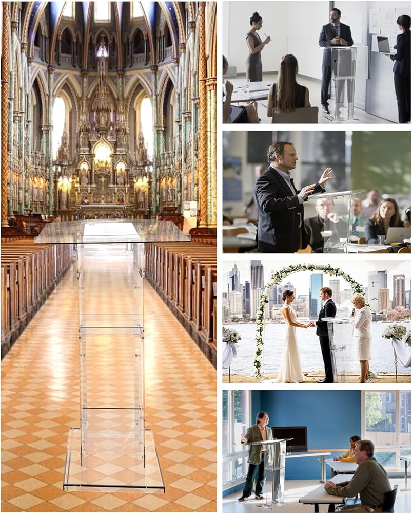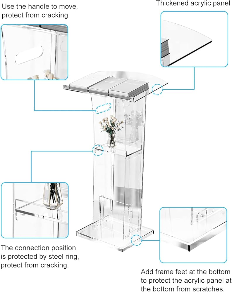 【جودة عالية】: المنبر مصنوع من مادة أكريليك عالية الجودة، والتي تتميز بمقاومة التآكل، ومقاومة السقوط، وشفافية جيدة، وسطوع عالٍ، وسهل التنظيف، ولن يتغير اللون، ولن يتأكسد، وله قدرة قوية على التأثير. .
