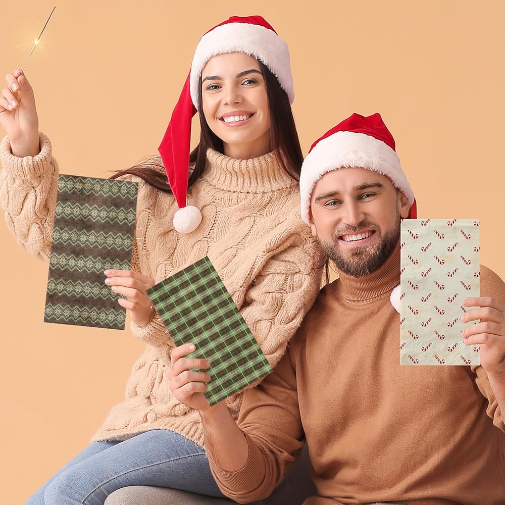 خامة فاخرة: جميع مناديل كوكتيل عيد الميلاد الخاصة بنا مصنوعة من ورق عالي الجودة، وتتميز مناديل العطلات بتصميم مزدوج الطبقات، ناعمة وذات قدرة على الامتصاص. النمط واللون مطبوعان جيدًا ومقاومان للبهتان لتوفر لك حفلة مليئة بأجواء حفلات عيد الميلاد الشتوية