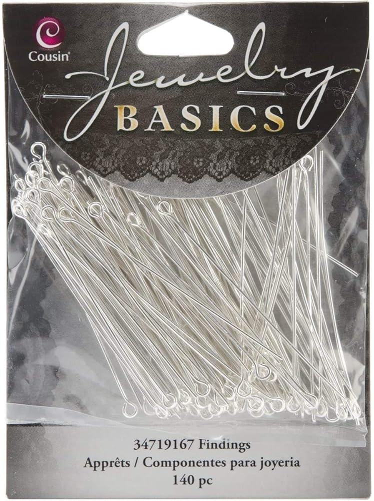 COUSIN-Jewelry Basics Collection. A collection of beautiful jewelry elements perfect for all your projects. This package contains 140 2 inch long Eye Pins. Color: Bright Silver. Imported.