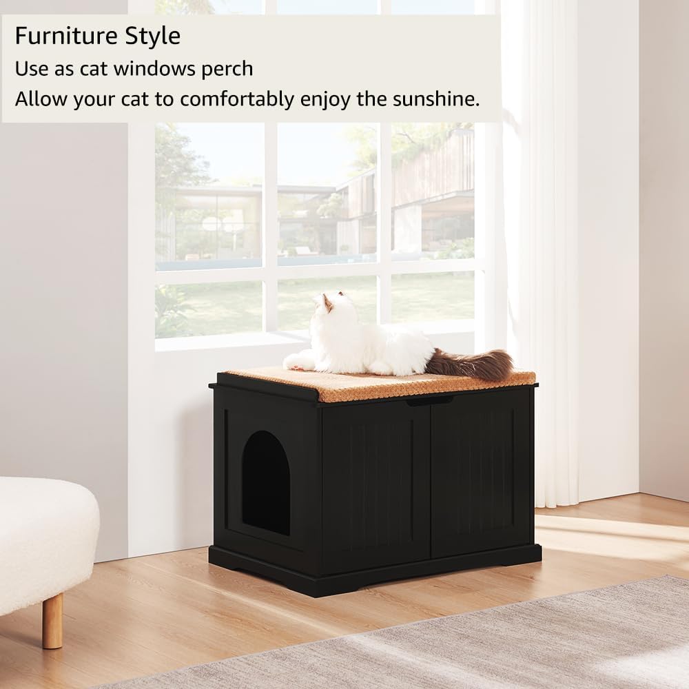 بيت القطط متعدد الوظائف: حامل ليلي جميل يخفي صندوق فضلات قطتك أو سريرها. مظهر الأثاث الأنيق يمتزج مع ديكور منزلك. مساحة علوية واسعة لتنظيم أدوات القطط والمجلات وجهاز التحكم عن بعد الخاص بالتلفزيون وما إلى ذلك.