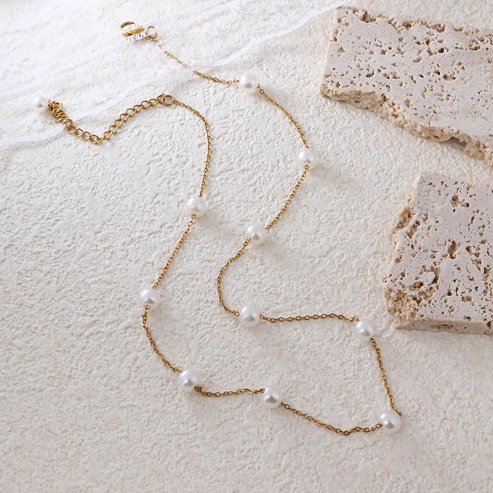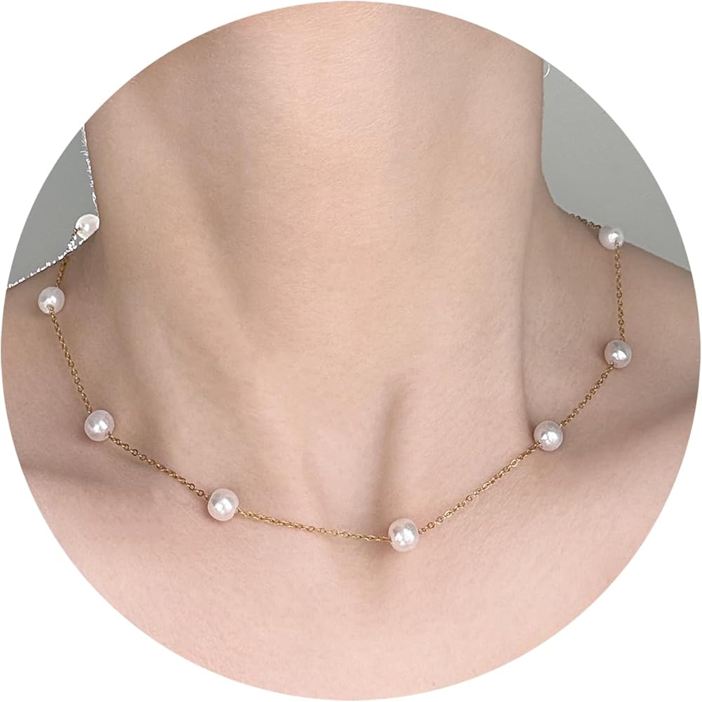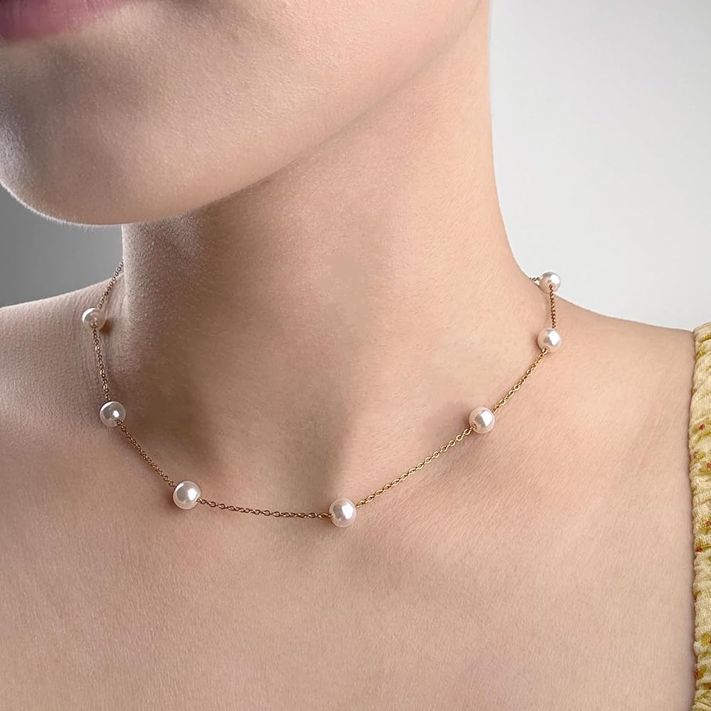 Gold Pearl Necklace 6mm Dainty Pearl Necklace Simple Pearl Necklace Wedding Jewelry Bridesmaid Necklace Pearl Jewelry for Women Gifts