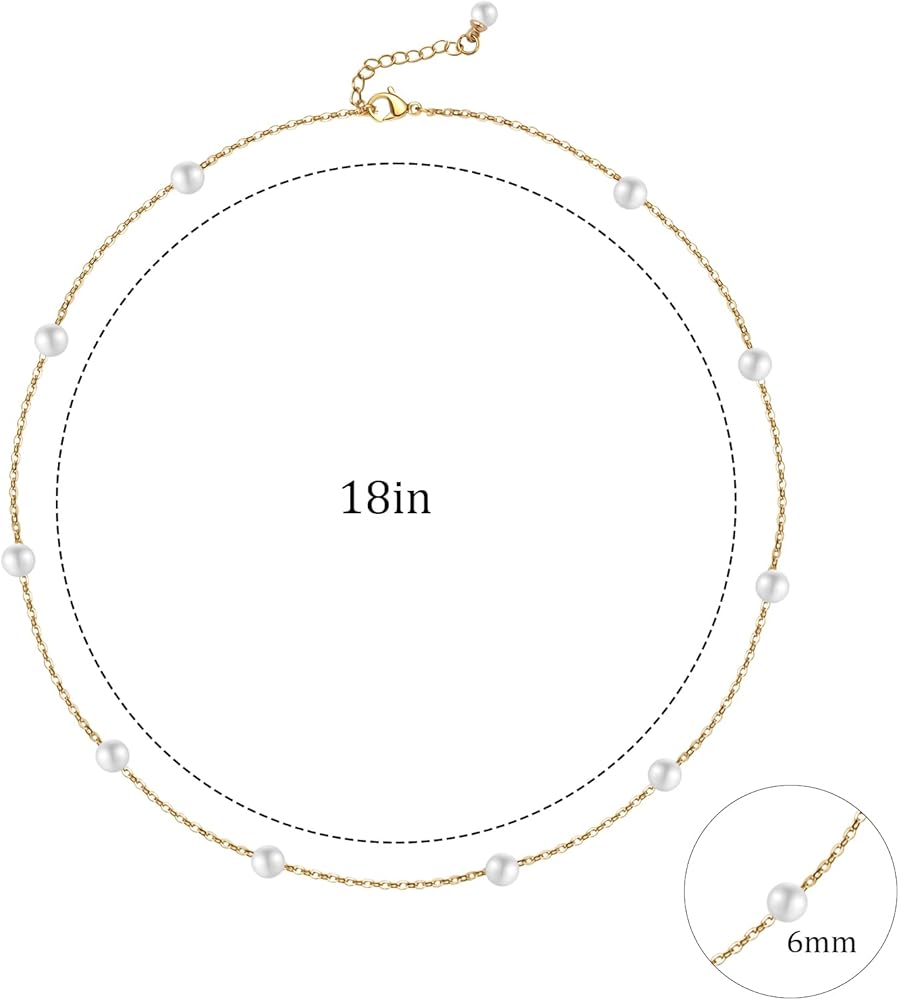 Size Check: The total length of this charm necklace is 18 inches long and the size of the pearl is about 6mm, You can wear this summer necklace alone or stack it with other necklaces, please check the size of this dainty silver necklace to see if it meets your expectation before you shop!