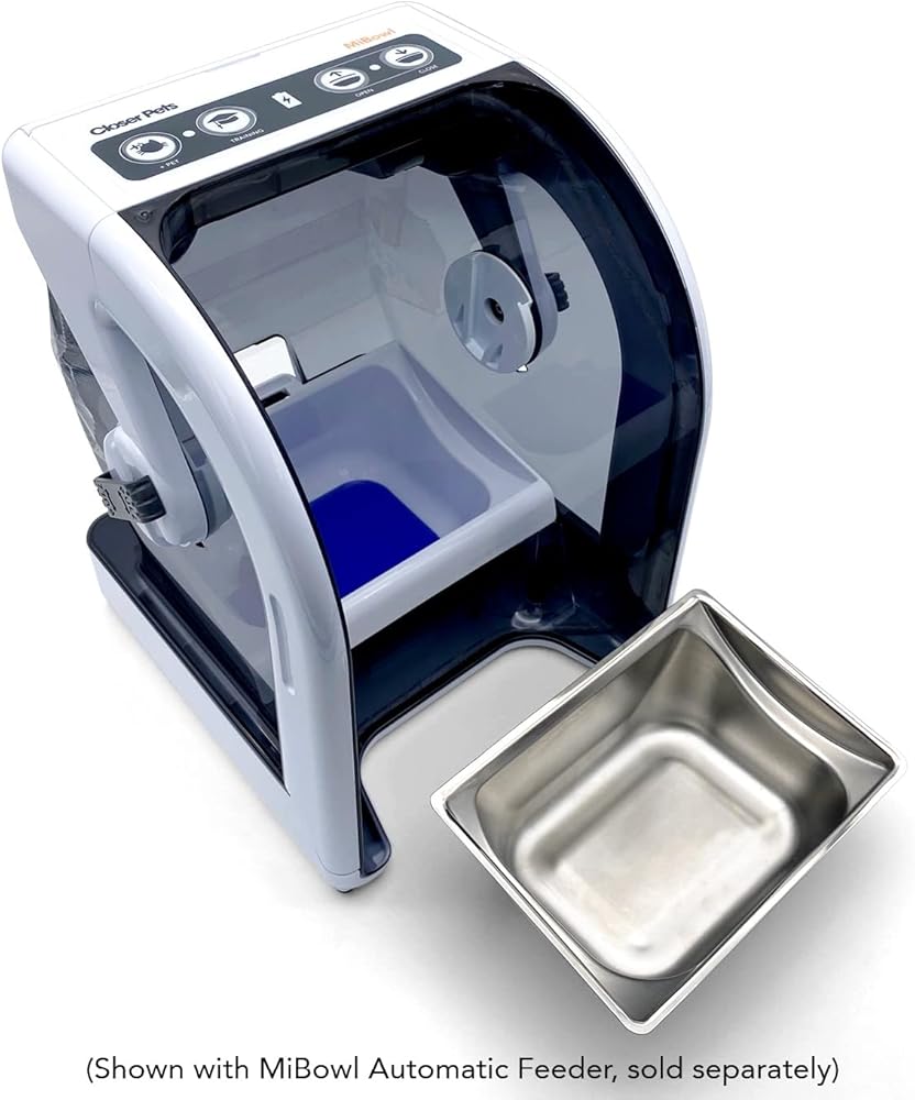 مجموعة من الحشوات المصنوعة من الفولاذ المقاوم للصدأ وحزمة الثلج لوحدة التغذية الأوتوماتيكية ذات الرقاقة الدقيقة MiBowl Pets من Closer Pets. تم تصميم الملحق المصنوع من الفولاذ المقاوم للصدأ ليتم وضعه في الوعاء الموجود المتضمن مع وحدة تغذية MiBowl. يتم وضع كيس الثلج في الوعاء الأصلي، مباشرة أسفل الوعاء المصنوع من الفولاذ المقاوم للصدأ، مما يساعد على الحفاظ على طعام حيوانك الأليف طازجًا طوال اليوم.