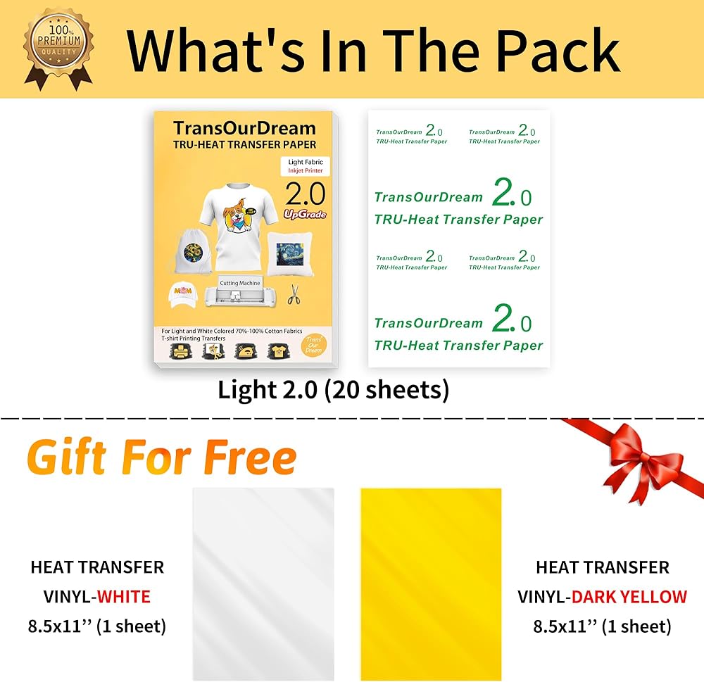 💕ورق نقل ترو: عبوة مكونة من 30 ورقة ورق نقل خفيف و3 أوراق فينيل ناقل للحرارة (ذهبي وفضي ورمادي داكن). قامت ورقة الضوء 2.0 التي تمت ترقيتها بإصلاح مشكلة عدم إمكانية قطع ورق نقل الضوء التقليدي باستخدام آلة القطع. تسمح الصيغة المطورة بقطع الورق بسهولة باستخدام المقص وآلة القطع ومتوافقة مع طابعات نفث الحبر. كما أن اللون أكثر حيوية من المنتجات التقليدية.