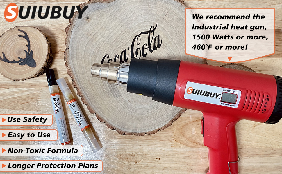 【منشط بالحرارة】: يتم تنشيط المواد الكيميائية غير السامة الموجودة في هذا القلم بالحرارة. 1. سطح خشبي جاهز (220 حبيبة)؛ 2. قم بامتصاص الحبر الجاف (المناشف الورقية)؛ 3. قم بتطبيق التصميم الخاص بك؛ 4. حافظ على تحرك مصدر الحرارة (460 درجة فهرنهايت أو أكثر)؛ 5. قم بإغلاق وحماية العمل النهائي الذي يمكنك تنفيذه بنفسك.