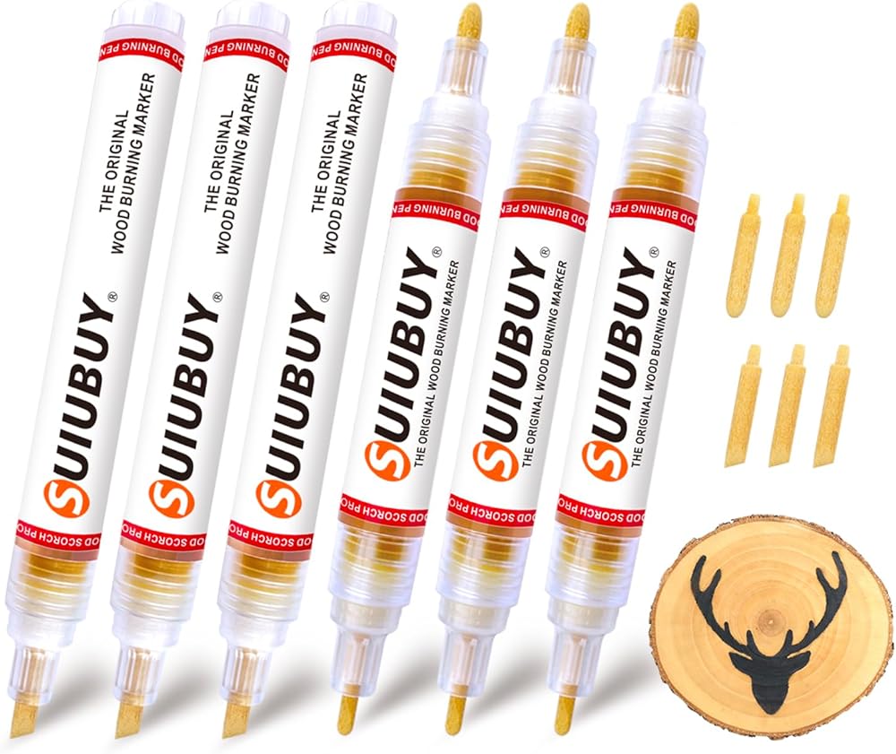مجموعة أقلام حرق الخشب من SUIUBUY، 6 قطع من أقلام الحروق مجهزة بـ 6 قطع بديلة، مجموعة حرق الخشب الكيميائي، مناسبة للمبتدئين في مشاريع حرق الخشب التي تصنعها بنفسك