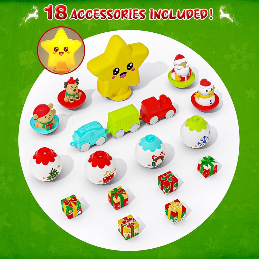 【مجموعة ألعاب عيد الميلاد الغنية】تأتي مجموعتنا مع شجرة عيد الميلاد، و4 ألعاب بولي لطيفة: سانتا كلوز، ورجل الثلج، والرنة، والدب، و4 كرات ثلج، و3 قطارات، و6 مسارات، ونجمة، و6 صناديق هدايا صغيرة. سهلة التركيب والتفكيك. يمكن للأطفال وضع النجمة بأنفسهم والشعور بالإنجاز من التثبيت. سواء تم وضعها في غرفة المعيشة أو غرفة النوم، يمكنها أن تضيف على الفور جوًا احتفاليًا دافئًا ورومانسيًا إلى منزلك، مثالية لديكورات حفلات عيد الميلاد للأطفال الصغار.