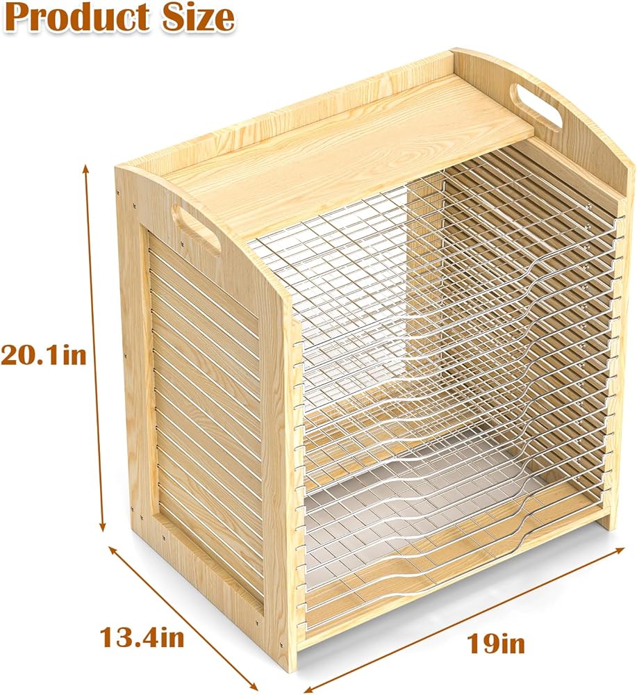 【مادة ممتازة】رف التجفيف الفني هذا مصنوع من إطار خشبي صلب وشبكة سلكية معدنية، وهي متينة وليس من السهل كسرها، وقدرة حمل قوية وعمر خدمة طويل.