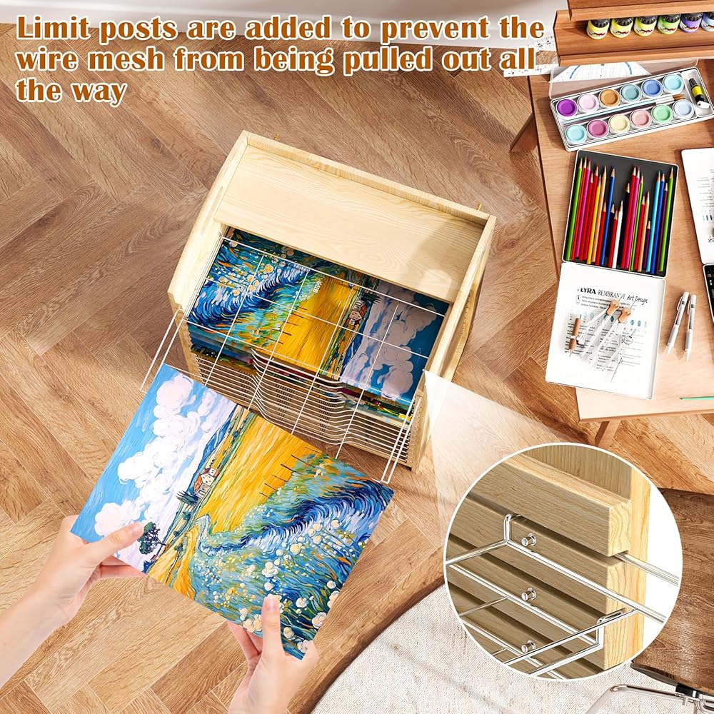 【تطبيقات واسعة】رف العرض المطبوع الفني مناسب لتخزين اللوحات القماشية والورق والكرتون وتجفيف وتخزين اللوحات الزيتية والألوان المائية والملصقات وغيرها من الأعمال الفنية بأمان. مثالي للاستوديوهات والعروض الفنية والمعارض والمدارس ورياض الأطفال ومراكز التعليم المبكر والاستوديوهات الإبداعية والمناسبات الأخرى التي تتطلب طلاء زيتي جاف.
