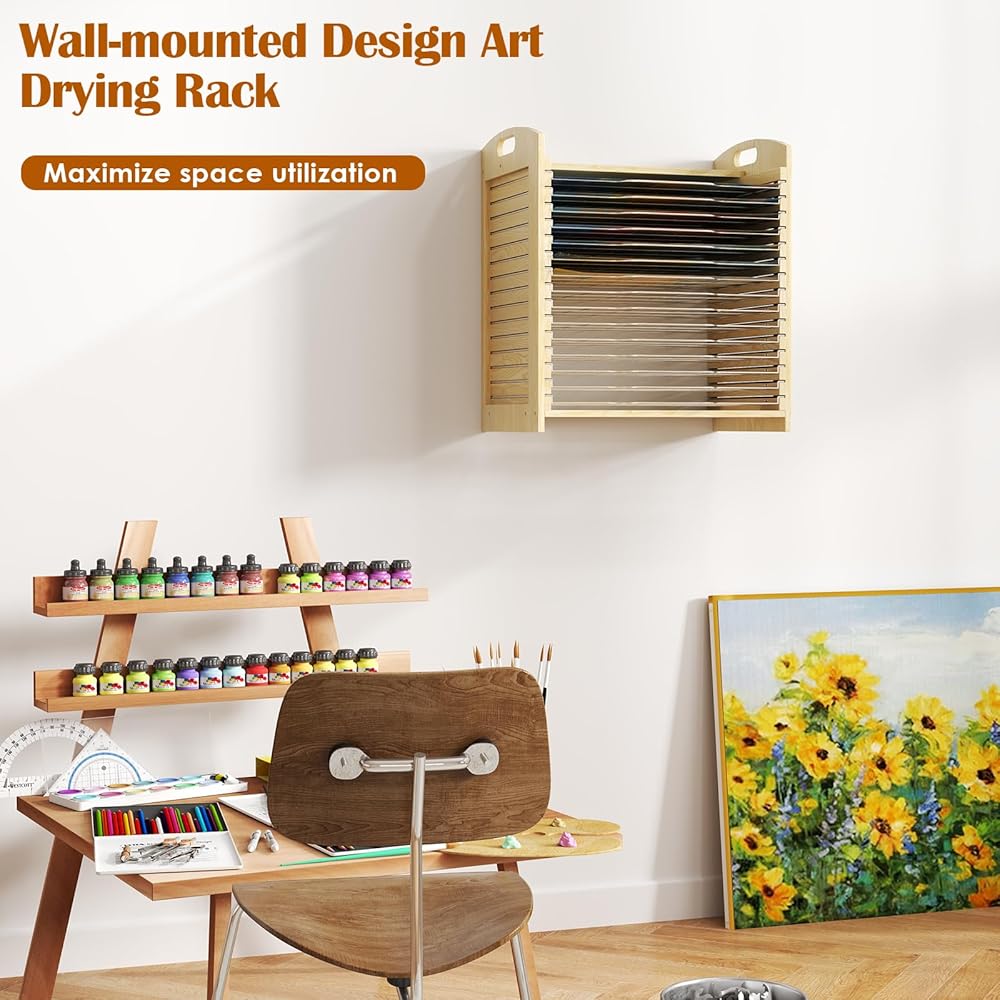 رف تجفيف الطلاء من jxgzyy مع 15 رفًا للتخزين الفني لتخزين القماش الفني المثبت على الحائط في الفصول الدراسية للاستوديوهات الفنية والأعمال الفنية والمعرض، 19 بوصة عمق × 13.4 بوصة عرض × 20.1 بوصة ارتفاع