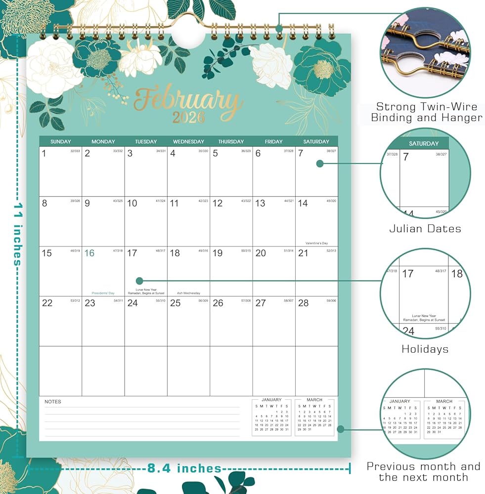 🌸التخطيط بفعالية - تقويم حائط 2025 من يناير 2025 - ديسمبر 2025، الحجم 8.4 × 11 بوصة. تساعد المكعبات اليومية الكبيرة (1.1 بوصة × 1.3 بوصة) على تدوين المواعيد والقسم المخصص للمهام والملاحظات يسمح لك بالتخطيط بكفاءة للشهر بأكمله.