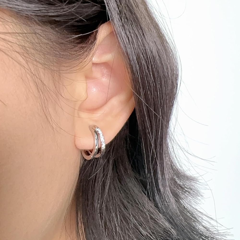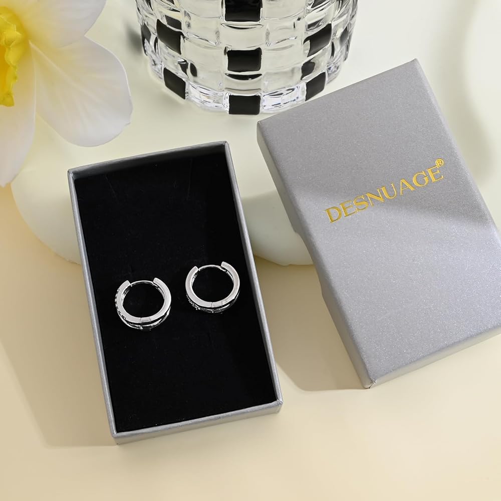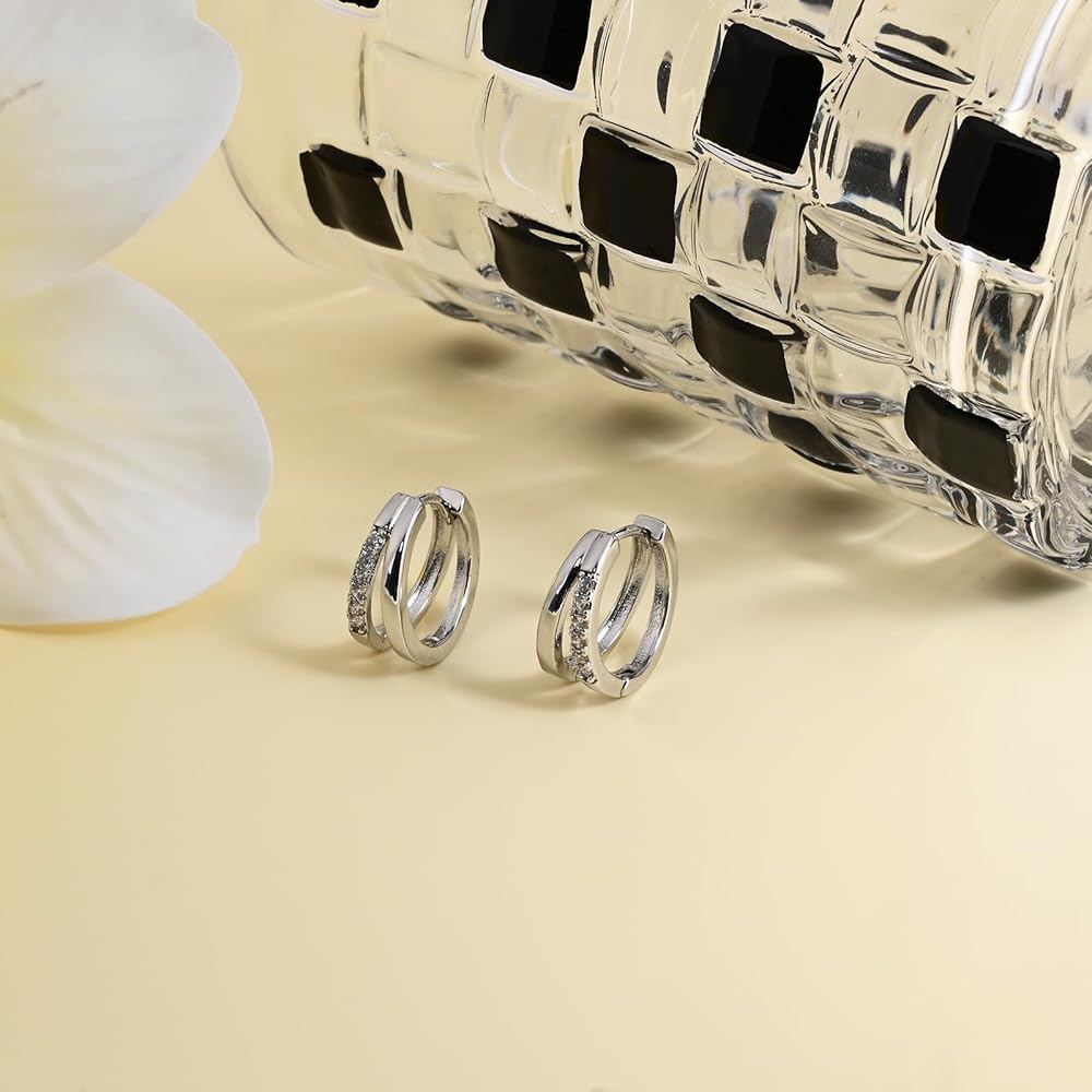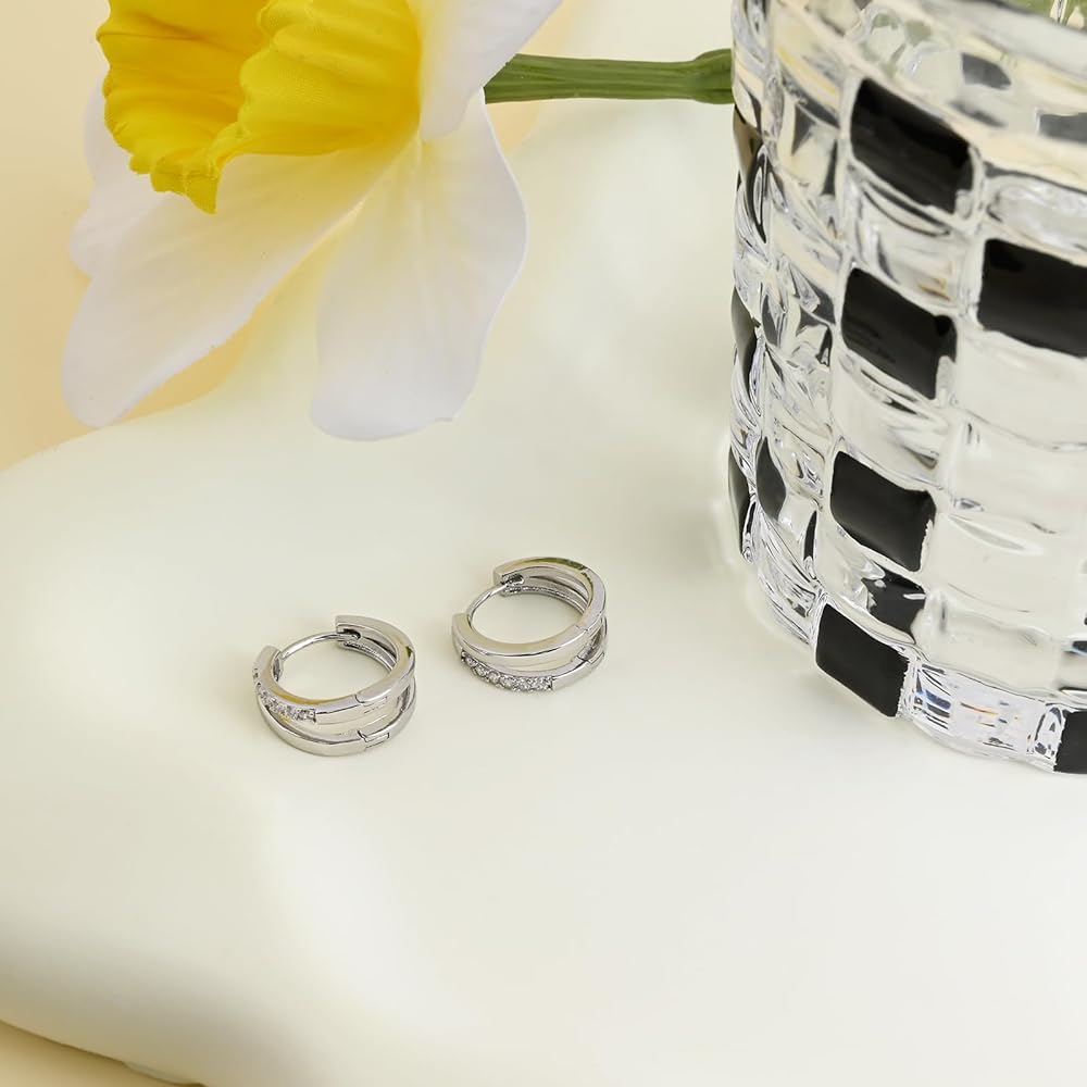 Silver Hoop Earrings Inlaid Cubic Zirconia Earrings Small Huggie Earrings Sterling Silver Earrings Clip on Earrings Huggie Hoop Earrings for Women Trendy