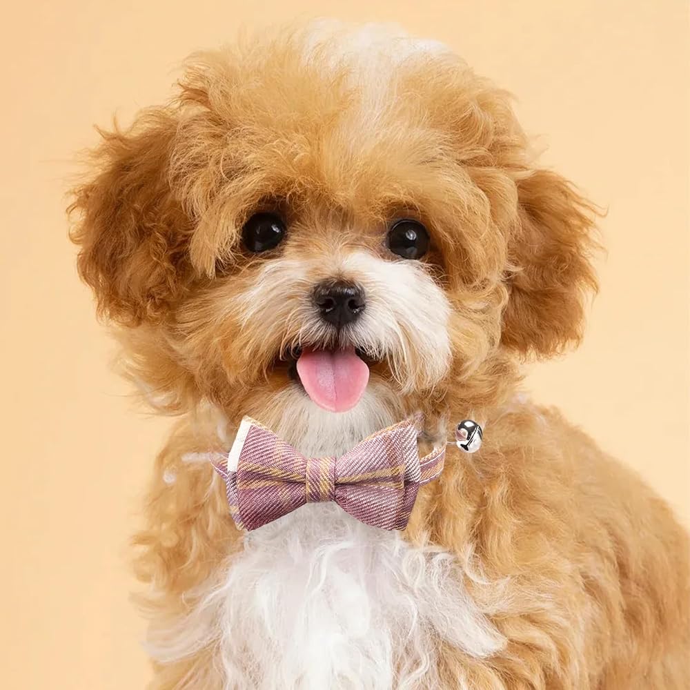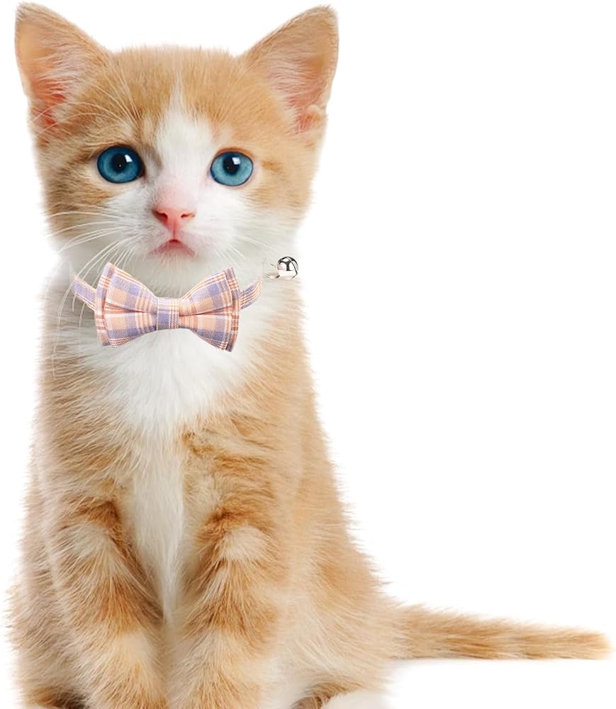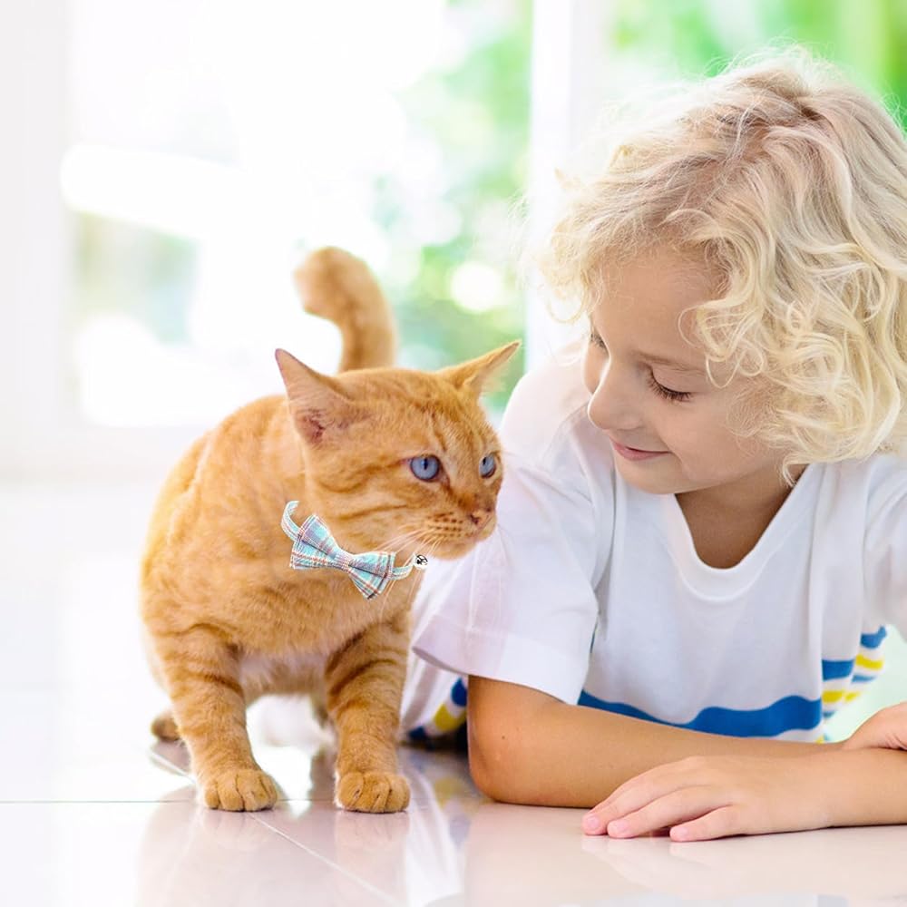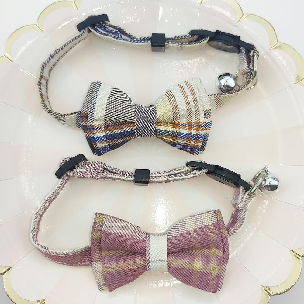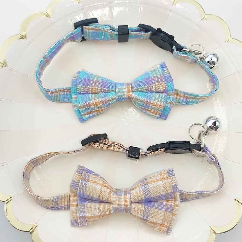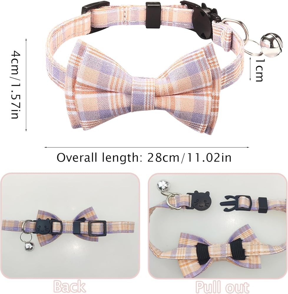 4PCS Cat & Dog Collar with Bells, Collar Breakaway Kitten Collar with Bell, Bowtie Plaid Cat Collar Adjustable for Kitten Puppy and Small Pets