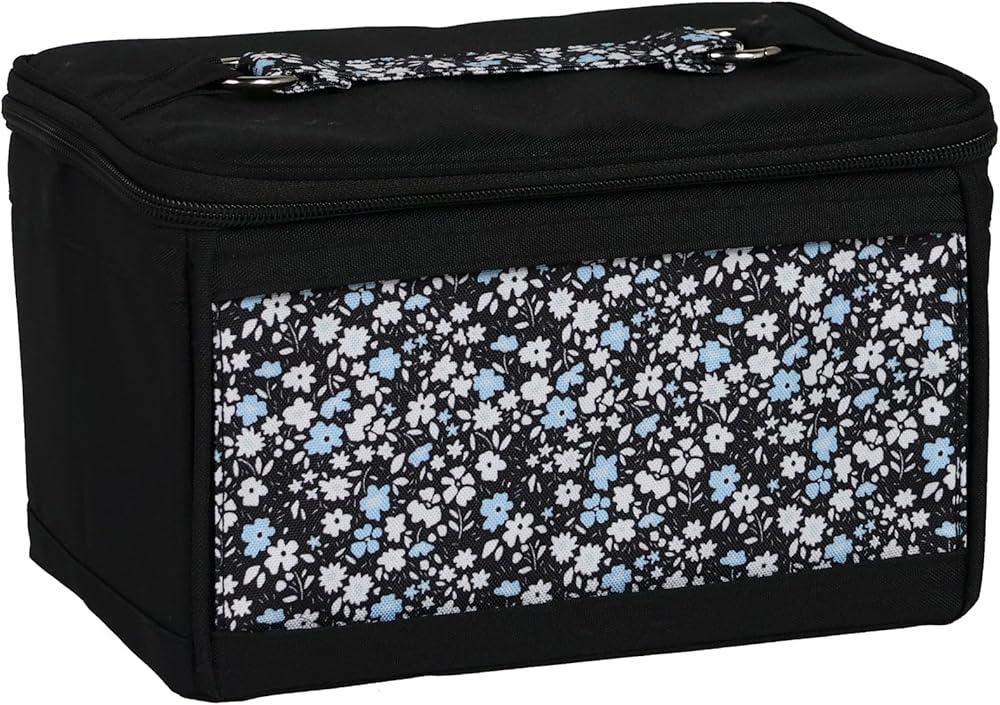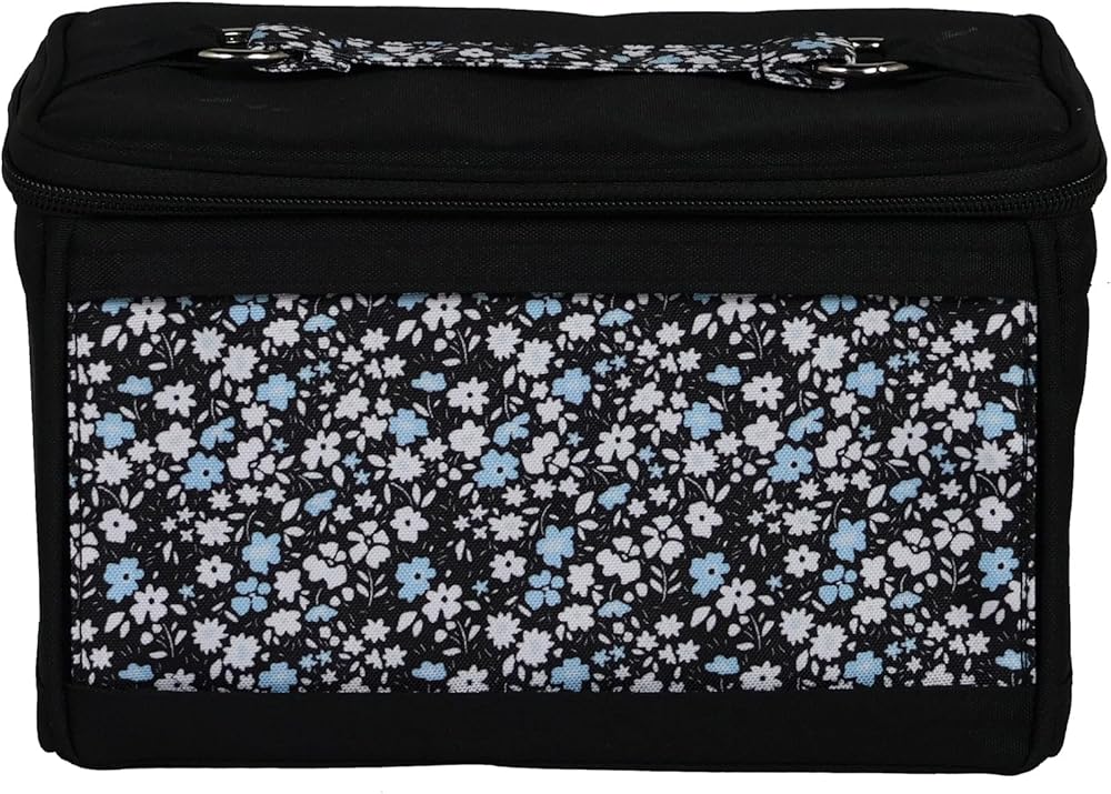 صندوق تنظيم أدوات الخياطة من إيفريثينج ماري، زهور زرقاء - سلة تخزين اللوازم والإكسسوارات - تنظيم الخيوط والإبر والأفكار والمقص - علبة يدوية محمولة