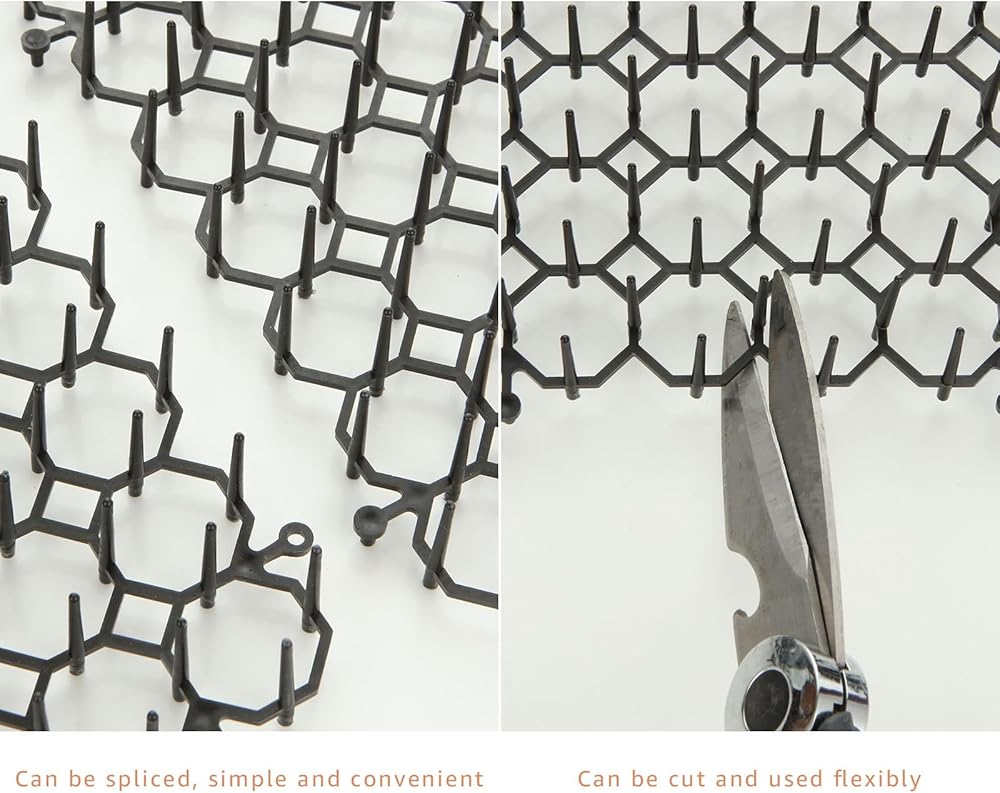 الاستخدام المرن - يتميز رادع حفر الكلاب الخاص بنا بخفة الوزن والمرونة، ويمكن قصه وتقطيعه بحرية ليناسب أي مساحة حسب الحاجة. يمكن ثني مخارز القطط بحرية لوضعها على الجزء العلوي والسفلي والجانبي والمناطق الأخرى من أي شيء، أو لفها حول عمود أو شجرة لمنع الحيوانات من التسلق.