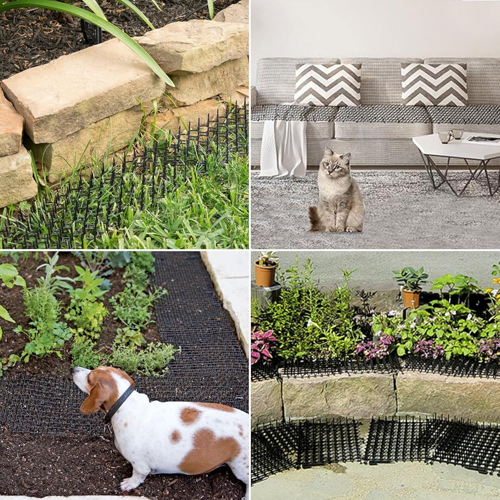 حماية مثالية - السجادة المضادة للقطط مناسبة جدًا للاستخدام الداخلي والخارجي، مثل الأريكة الداخلية والكرسي والطاولة والمنضدة والسرير والنافذة والباب وما إلى ذلك، تستخدم للحديقة والحديقة النباتية والنباتات والنباتات والحديقة السيارة وأي شيء آخر. يمكن أن يمنع الكلب بشكل فعال من الحفر والتغوط والتبول.