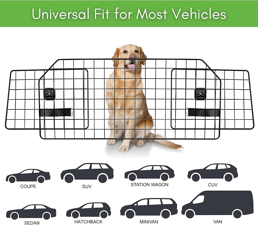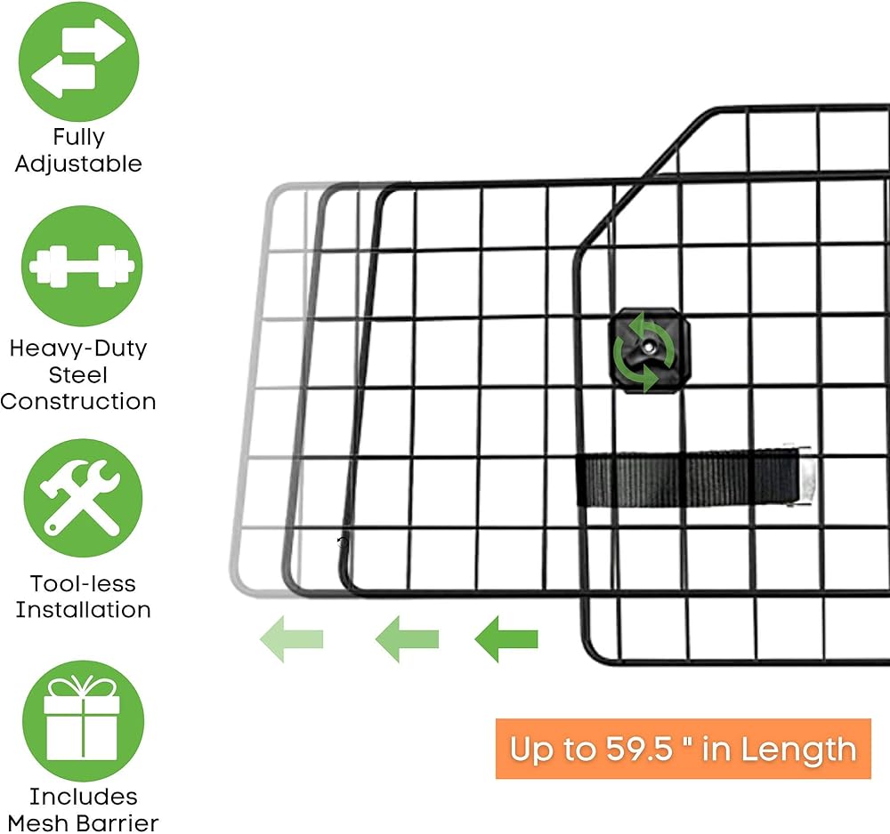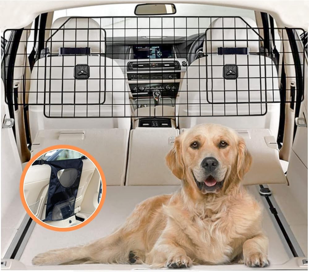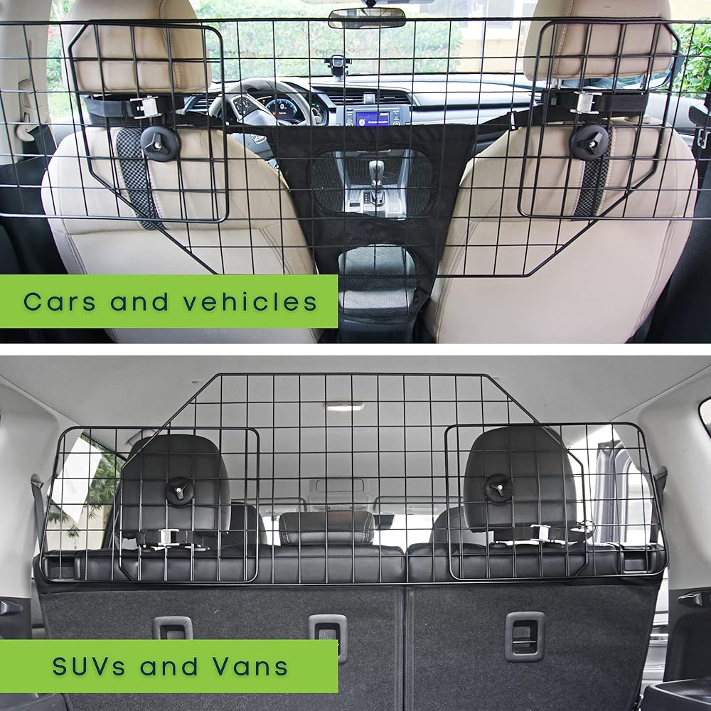 يشتمل على حاجز حماية مزدوج إضافي: بوابة شبكية مزدوجة الحماية للكلاب لتغطية أي فجوات محتملة يمكن لكلبك الزحف تحتها (مناسبة لمعظم السيارات). أضف إلى عربة التسوق لتبدأ في الاستمتاع براحة البال أثناء القيادة مع حيواناتك الأليفة.