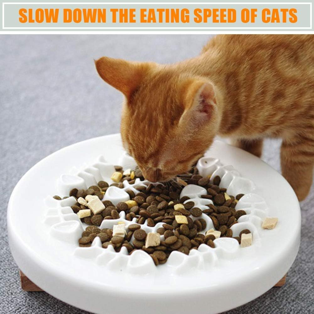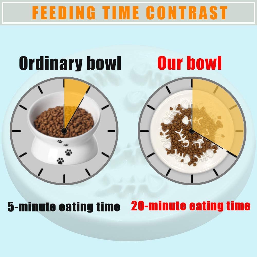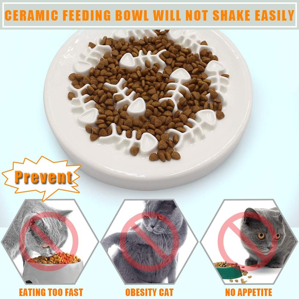 🐱【هل أنت قلق من أن مادة وعاء التغذية البطيئة للقطط ستؤثر على صحة حيوانك الأليف؟】- مصنوع من السيراميك عالي الجودة، تصميم سطح أملس، وعاء التغذية البطيء للقطط لن يخدش قطتك. جهاز تغذية القطط البطيء بدون رائحة كيميائية، يمكن استخدامه بسهولة.
