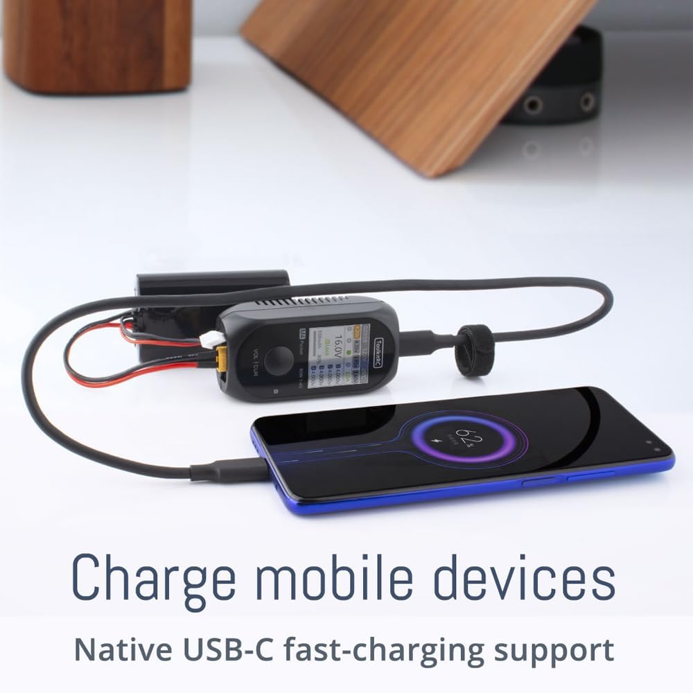 The M4 Pocket is not just an RC battery charger, it can also charge your mobile device.USB-C output:1.0A @ 5.0V