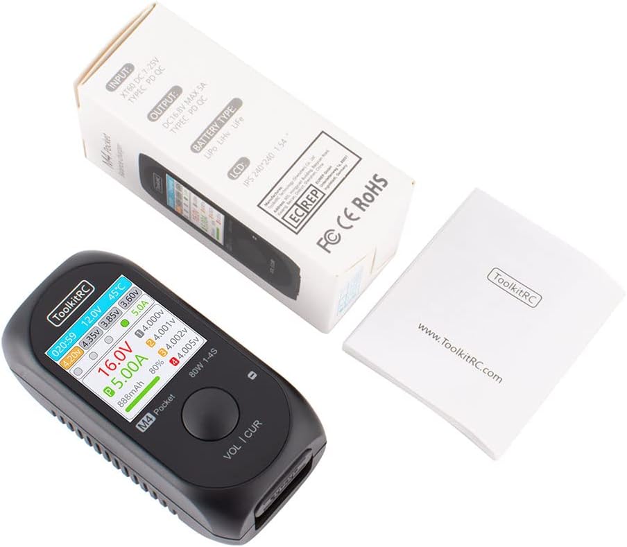 ToolkitRC M4 Pocket RC Lipo Mini Smart Charger DC 80W 5A XT30 XT60 إدخال USB-C شاحن الإدخال / الإخراج لبطارية ليبو 1-4S وظيفة الشاحن السريع