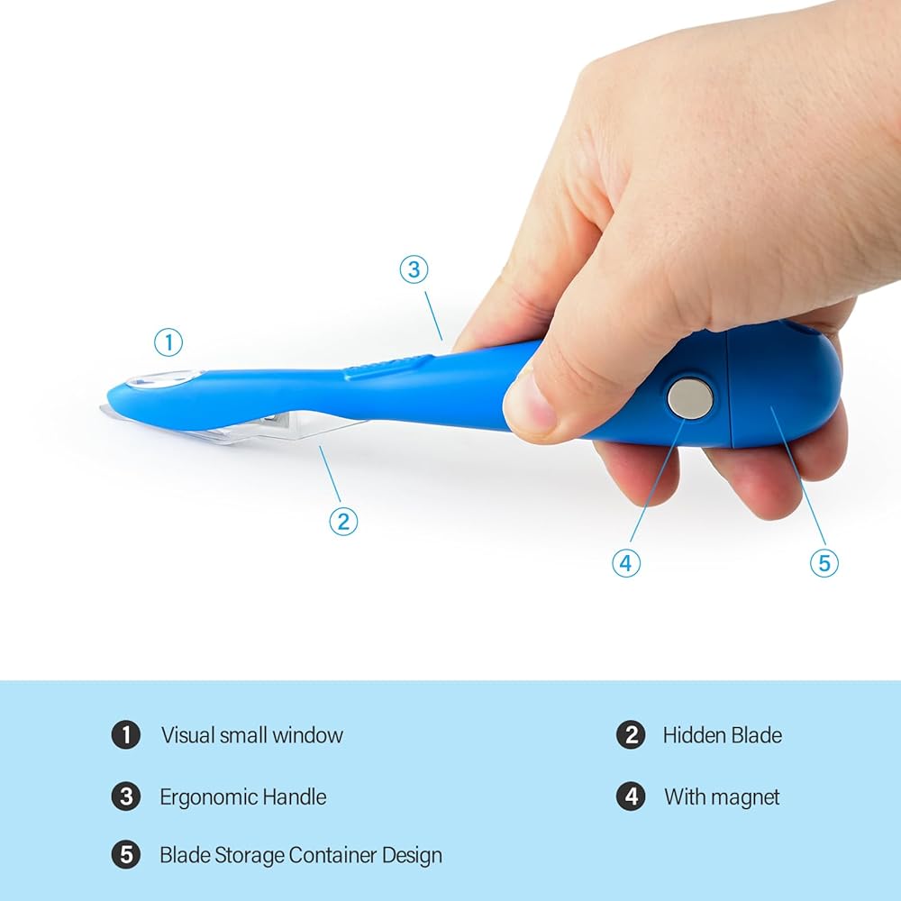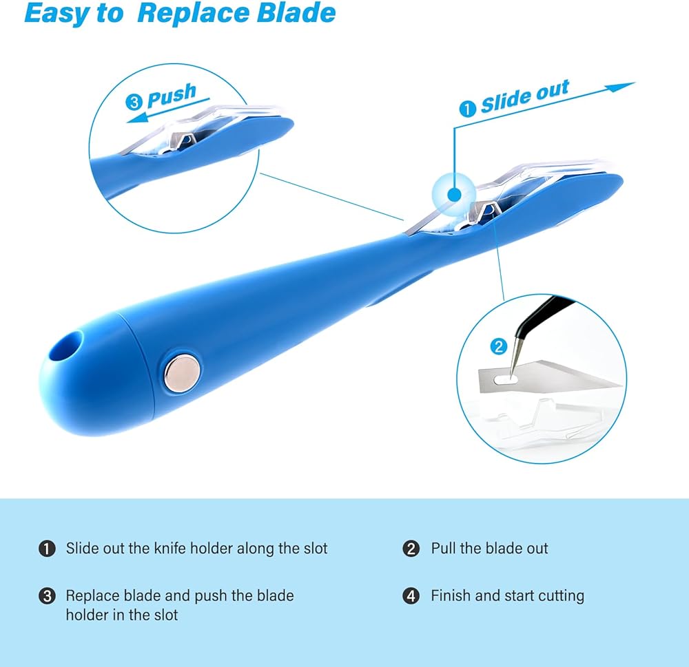 • قطاعة الفينيل بتصميم مغناطيسي: المغناطيس الموجود على مقبض القاطع يجعل من السهل تخزينه، ويمكنك الاحتفاظ به في متناول اليد على سطح معدني مثل الثلاجة أو المكتب المعدني.