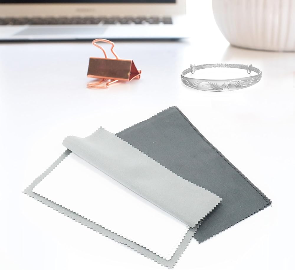 【Double-sided design】The polishing cloth adopts a double-layer design, making it two-in-one for easy use. The gray outer layer is for polishing and shining, and the white inner layer is for cleaning dirt, making your jewelry more beautiful and shiny.
