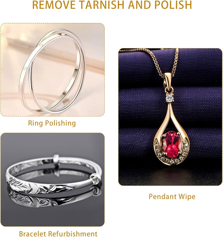 【Wide Applications】The silver polishing cloth for sterling silver is widely used to wipe rings, earrings, necklaces, bracelets, watches, and other jewelry. It is suitable for silver, gold, gemstones, and stainless steel. The silver jewelry cleaner cloth can help your jewelry restore its original shine and charm.