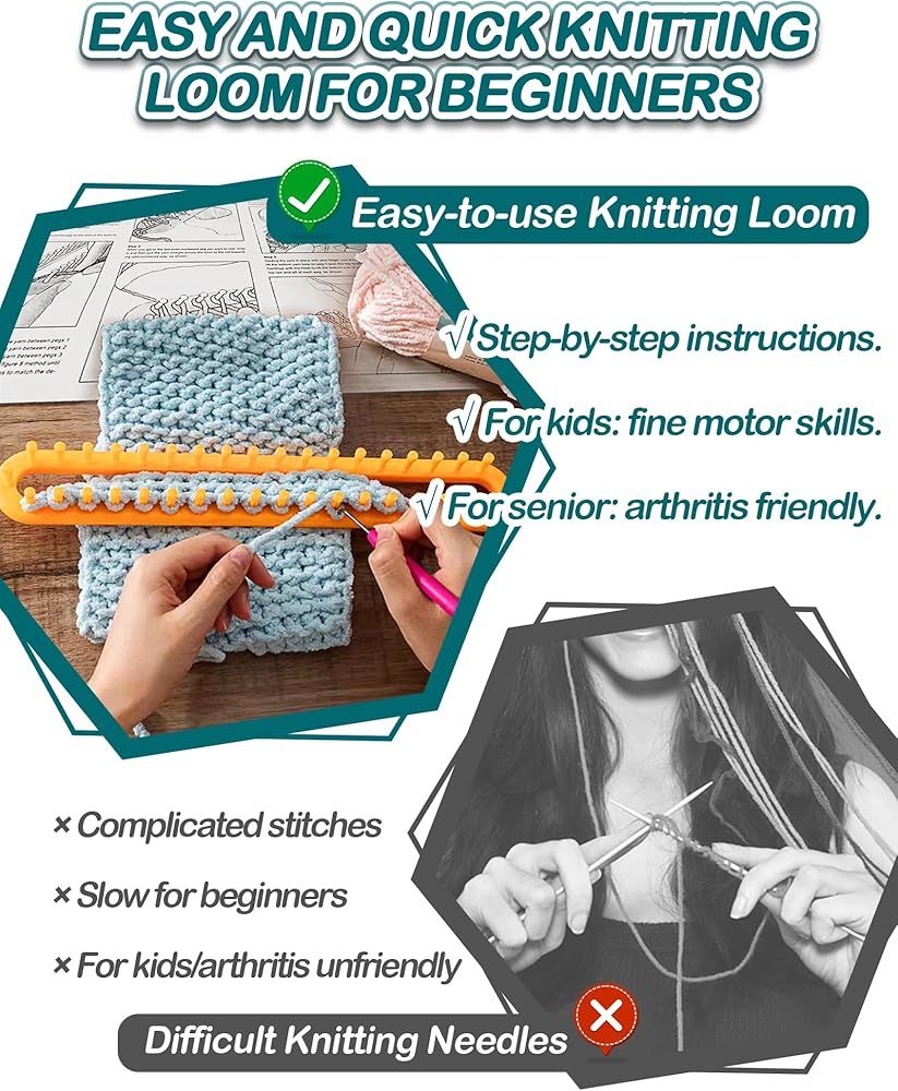 - Perfect for any beginner who wants to teach themselves to knit with a long loom knitting set in a very simple way, and without having to invest too much of a budget to start learning a new skill!