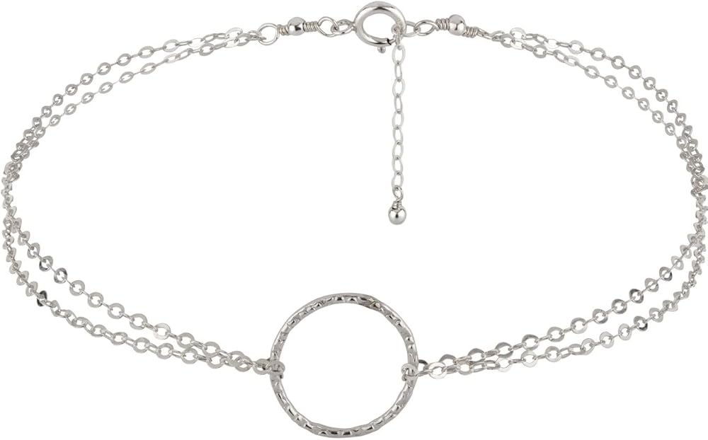 Stylish and Sparkly Sterling Silver Anklet for Women with a Textured Circle Karma Pendant