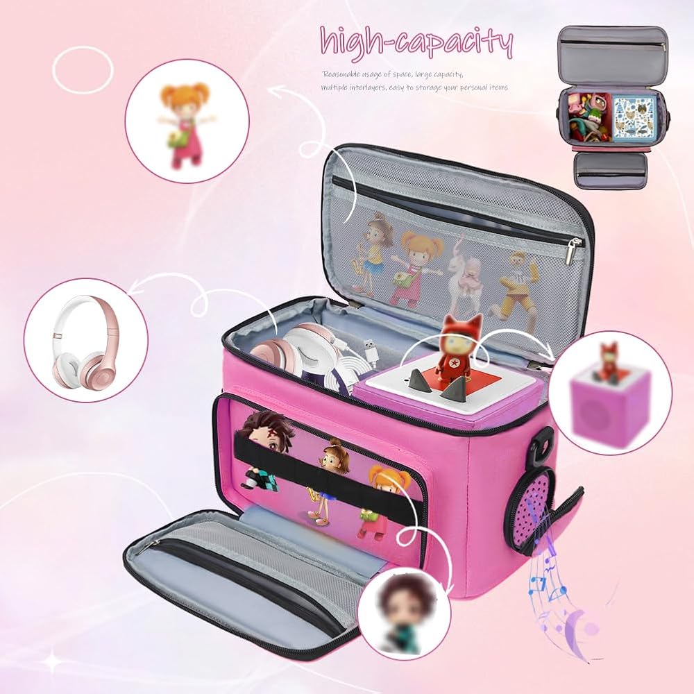 مساحة تخزين كبيرة: تحتوي حقيبتنا الناقلة لـ Toniebox على فاصلين مرنين من القطن الملمس في الحجرة الرئيسية، لذلك يمكنك ضبط حجم مساحة الحجرة وفقًا لاحتياجاتك الشخصية. بالإضافة إلى القسم الرئيسي، تتميز حقيبة الحمل هذه بجيب شبكي على الجانب وجيب بسحاب في الأمام. توفر حقيبة الحمل هذه مساحة كبيرة لجهاز Toniebox والشاحن وسماعات الرأس وشخصيات Tonies الخاصة بك