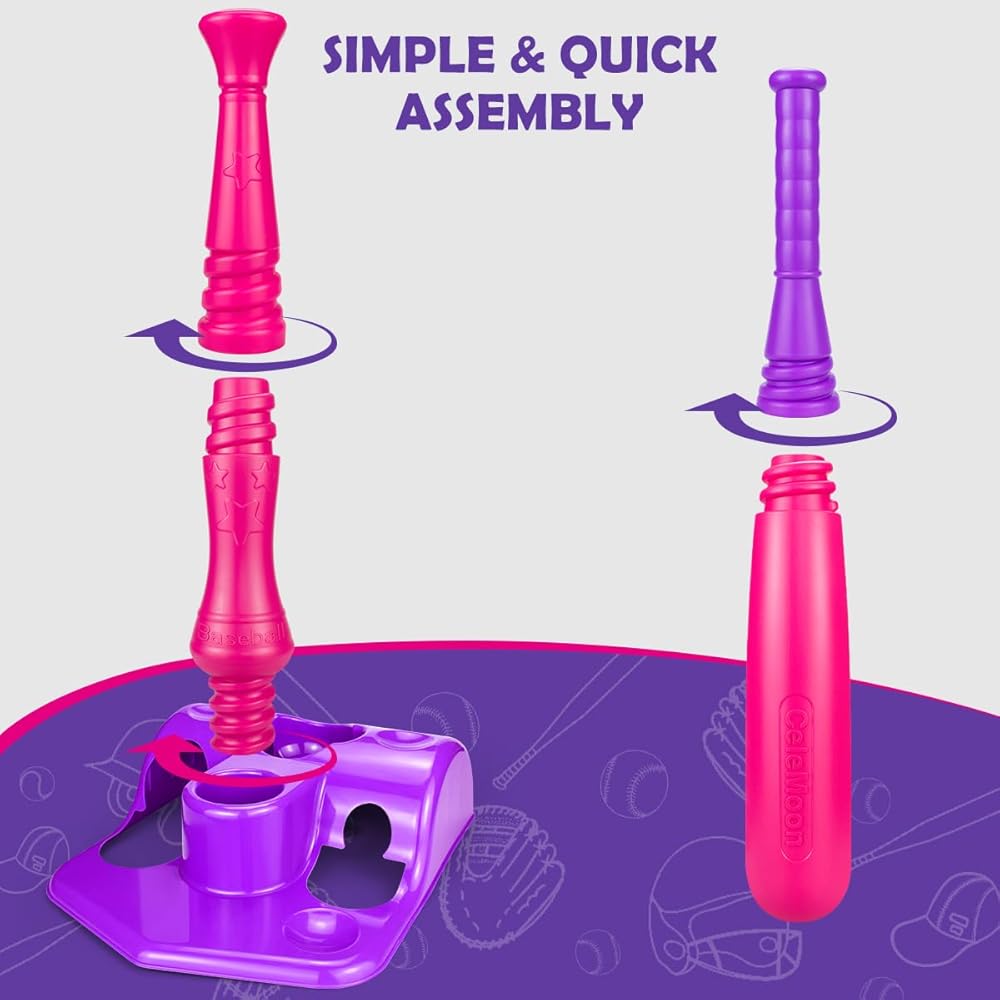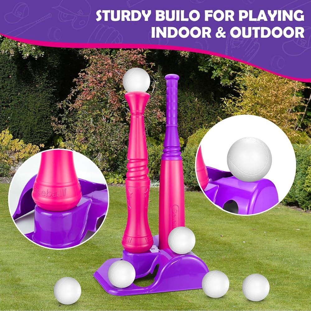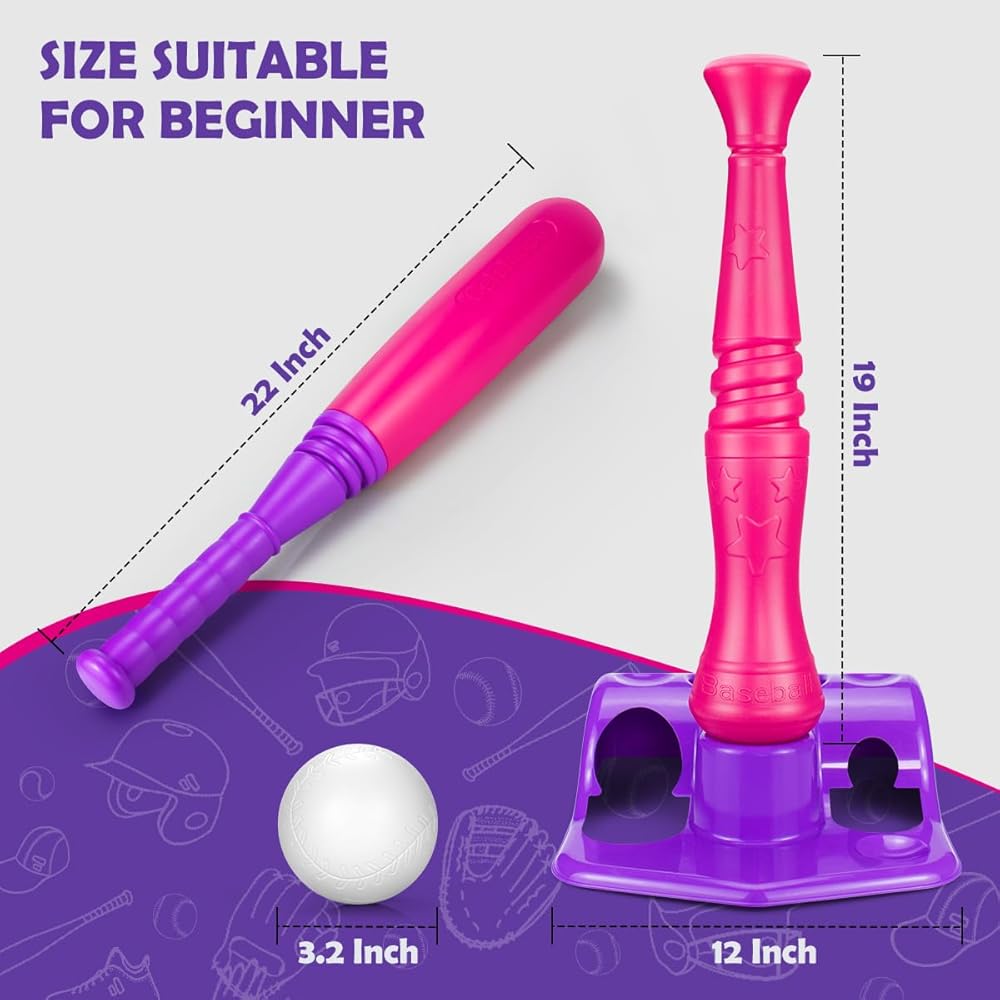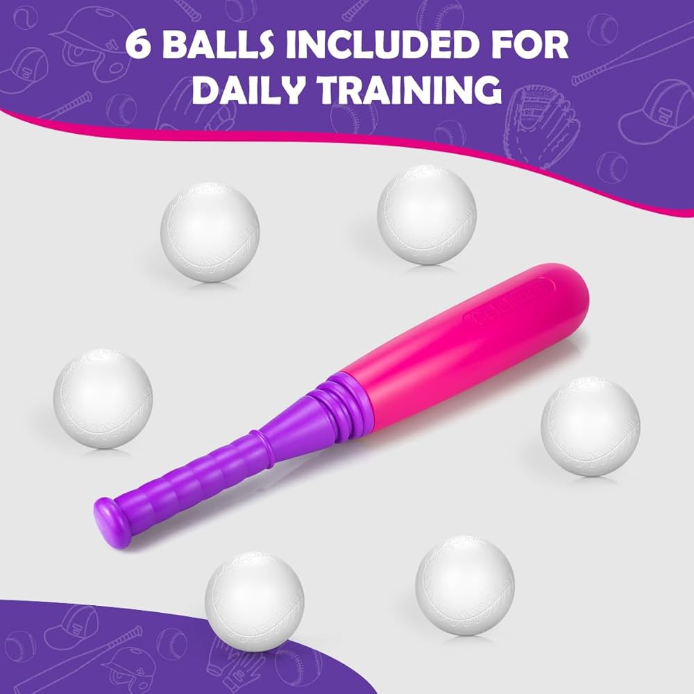 مجموعة TBall للأطفال الصغار من سن 3 إلى 5 سنوات، مجموعة ألعاب البيسبول البيسبول، 6 كرات متضمنة، للأطفال الأولاد والبنات من سن 3 إلى 8 سنوات، لعبة لعب رياضية داخلية وخارجية، وردي