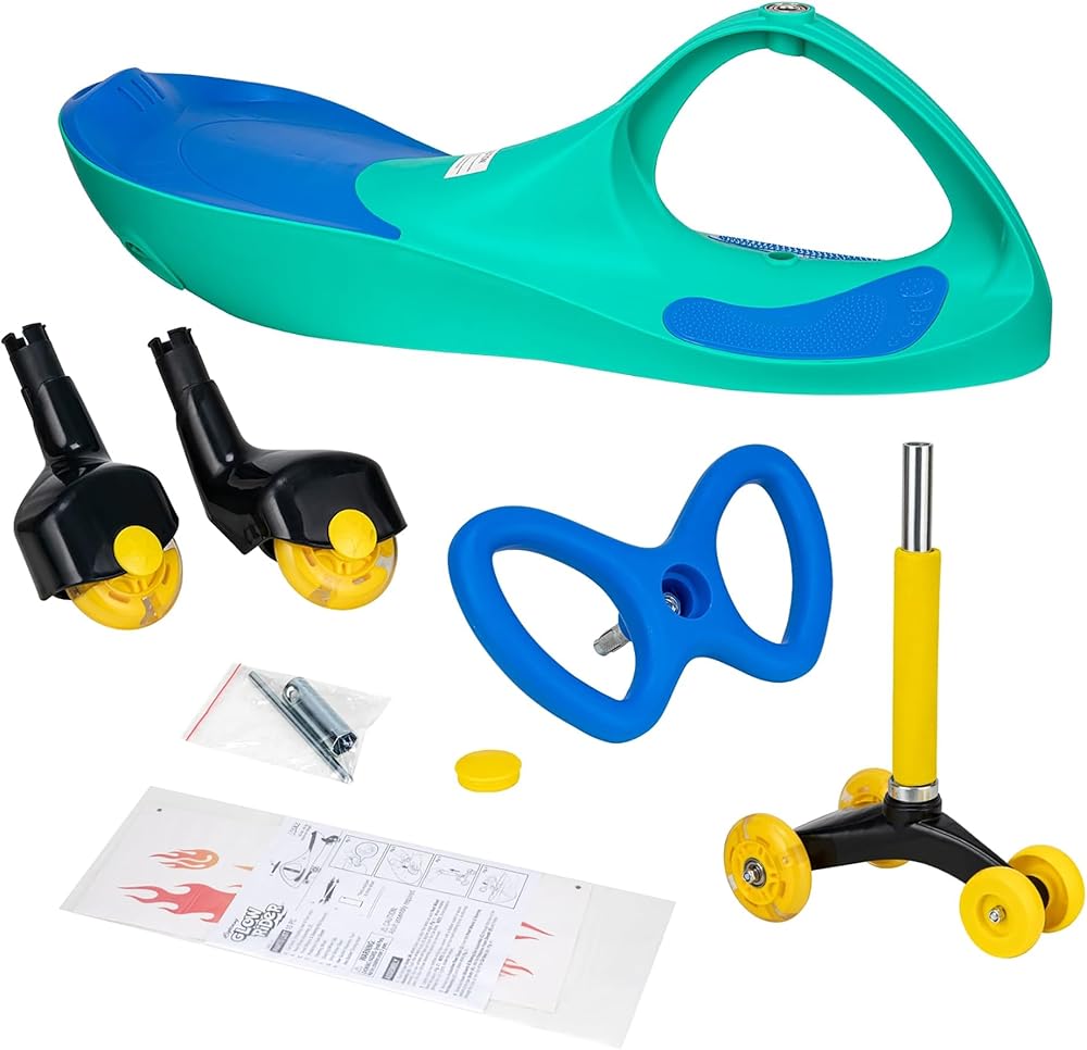 • لا توجد بطاريات أو معدات أو دواسات: اقفز على Glow Rider، واحصل على بعض الجمود، واسند قدميك على مساند القدمين، وانطلق! لا حاجة إلى استخدام الدواسة أو تشغيل الراكب لأن الزخم يقوم بالعمل.