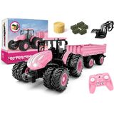 • مجموعة جرارات تحكم عن بعد مطورة: تتميز مجموعة الجرار هذه المصممة بشكل فريد برأس جرار معدني، و8 عجلات، وجهاز تحكم عن بعد بتردد 2.4 جيجا هرتز، ومحمل أمامي، ومقطورة قابلة للتفريغ، وخطاف مطور، وأضواء عمل، وإكسسوارات مزرعة واقعية - بما في ذلك البقرة والأغنام وبالات القش المربعة وبالات القش المستديرة (أبعاد الجرار: 6.1 بوصة × 19 بوصة)