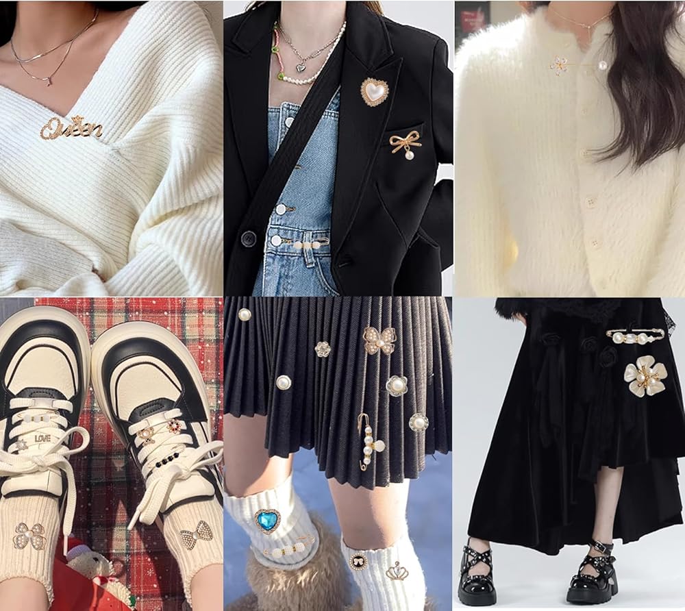 Fashionable Junk Socks Charms Kit: The Set Includes 18 Sock Charms Pins, 20 Random Button Brooch Pins, And 20 Gold Safety Pins. With Diverse Styles Like Flower Sock Charms Pins, Butterfly Sock Charms Pins, Rhinestone Sock Jewelry Charms Pins, sneaker charms, And Love Pearl Pins, These Accessories Meet Your Various Styling Needs for Every Occasion, Enhancing Your Overall Look