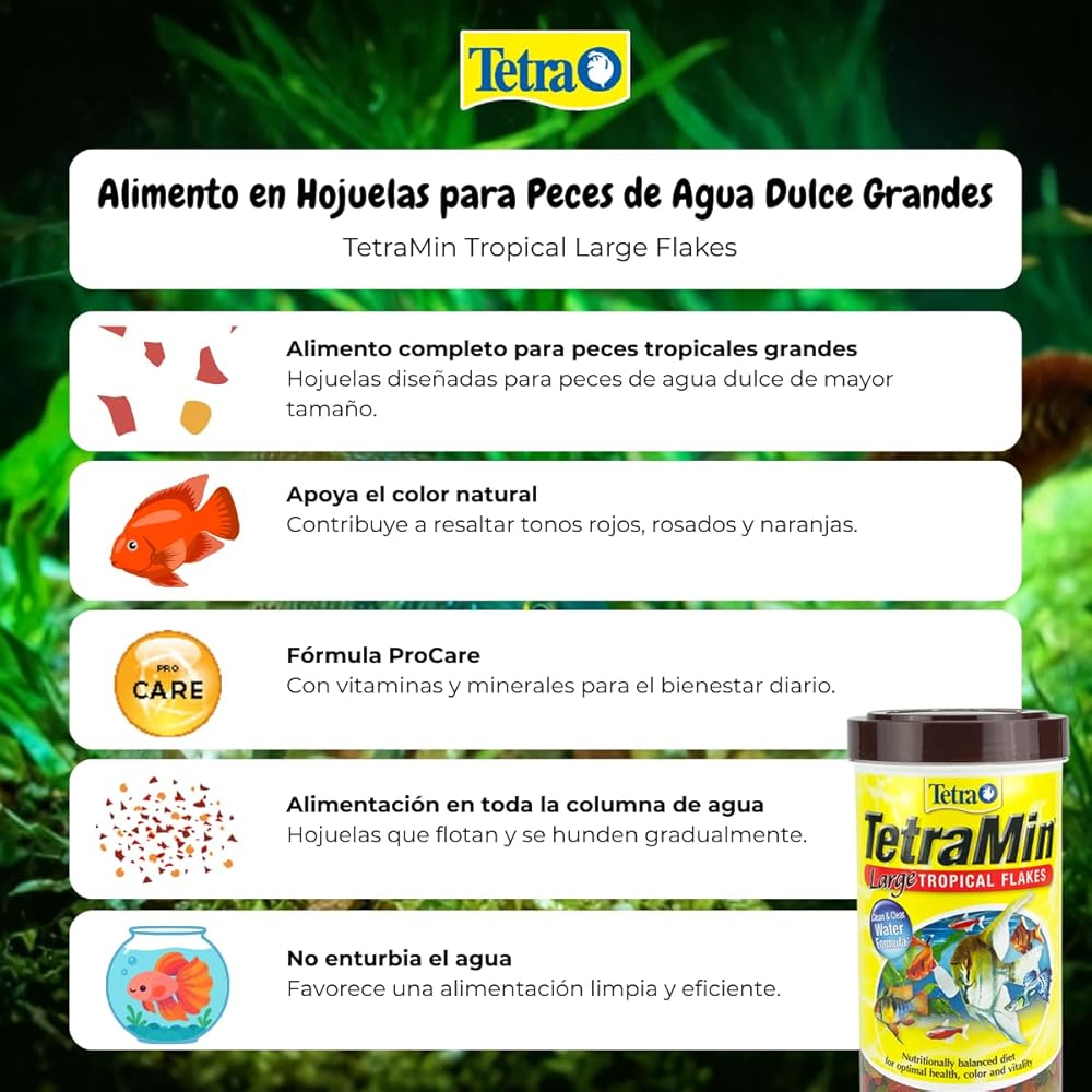 TetraMin Tropical Flakes النظام الغذائي الأصلي للأسماك الاستوائية من TetraMin، رقائق TetraMin الاستوائية متوازن من الناحية الغذائية للحصول على صحة مثالية للأسماك. هذه التركيبة مليئة بـ ProCare الحاصل على براءة اختراع والذي يوفر جرعات دقيقة من الفيتامينات والمواد المغذية المختارة لدعم صحة الجهاز المناعي، والبيوتين للمساعدة في الحفاظ على عملية التمثيل الغذائي، وأحماض أوميغا 3 الدهنية لتوفير الطاقة والنمو. تم تطوير TetraMin Tropical Flakes علميًا ليتم هضمها بسهولة وتتميز بمحسنات الألوان التي تبرز الألوان الزاهية لأسماكك الاستوائية.