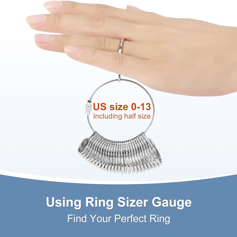 نطاق القياس: تأتي أداة تحديد حجم الخاتم المصنوعة من الفولاذ المقاوم للصدأ في 27 مقاسًا، ومقاسات الخاتم الأمريكية 0-13 (بما في ذلك نصف الحجم)، ومقاسات بلاستيكية مكونة من قطعتين لمقاسات الخاتم من 1 إلى 17. مقاس المجوهرات بدقة، قل وداعًا للتخمين و العثور على حجم الخاتم المثالي.