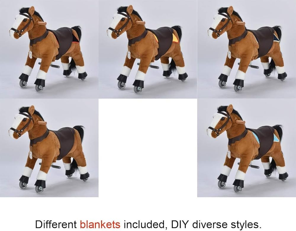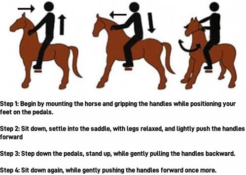 • سهل الاستخدام: مريح للركوب في الداخل والخارج على أرض مسطحة، فقط ضع الأرجل على الحصان واضغط على الدواسة ثم يبدأ الحصان في التحرك، اركب مثل الحصان الحقيقي، بدون كهرباء، عجلات ناعمة، لا تسبب ندبًا على الأرضيات.