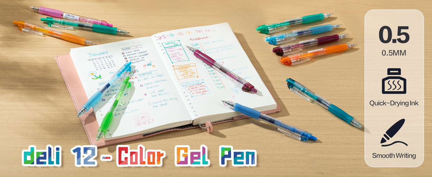 - 【العبوة متضمنة】- تتضمن 12 قلم جل حبر 0.5 مم، رائعة لتقديم الهدايا، والمذكرات، وتدوين الملاحظات، ومهام الكتابة الفنية واليومية المتنوعة.