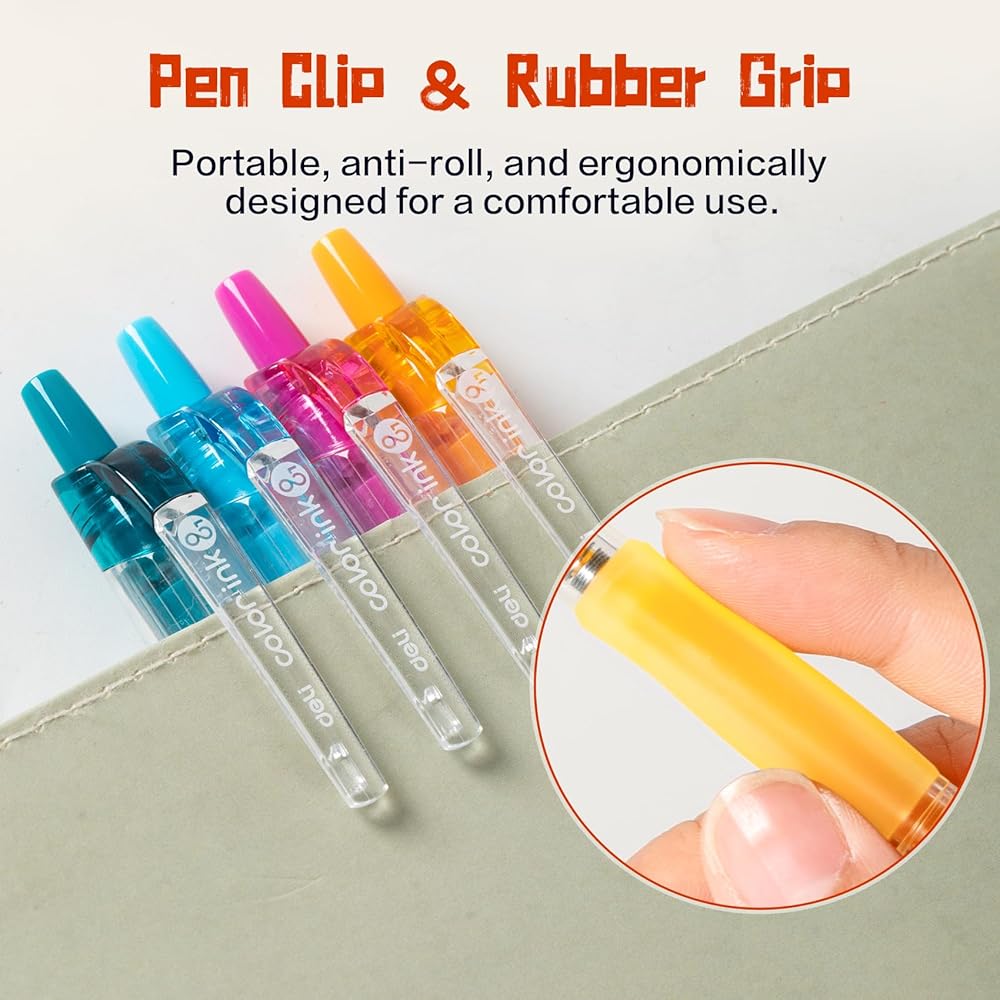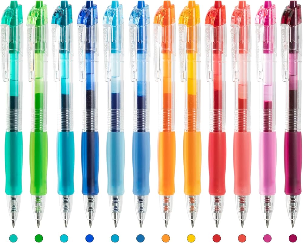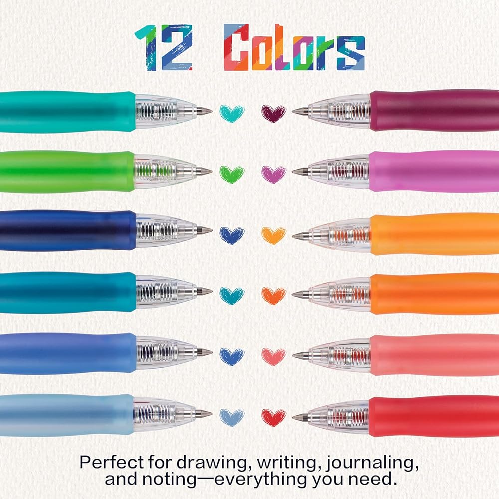 أقلام جل قابلة للسحب 12 لونًا من ديلي، قلم جل ذو نقطة دقيقة 0.5 مم، أحبار بألوان متنوعة، قبضة مريحة للرسم، كتابة اليوميات، تدوين الملاحظات واللوازم المدرسية