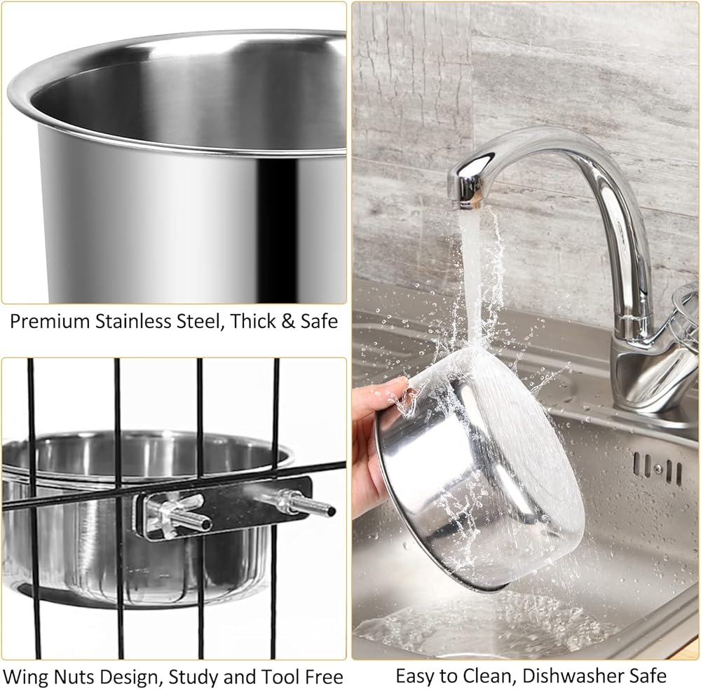 مستقرة وآمنة على القفص: مصنوعة من الفولاذ المقاوم للصدأ الفاخر، مجموعة أوعية الكلاب متينة لتدوم إلى أجل غير مسمى حتى حيوانك الأليف يمضغ. يتناسب وعاء الكلب المعدني بشكل مريح مع المكان المدعوم بالحلقة لتجنب الانسكاب للحفاظ على نظافة بيت الكلب. المجموعة بأكملها سميكة وشديدة التحمل للكلاب المتوسطة والكبيرة المدمرة.