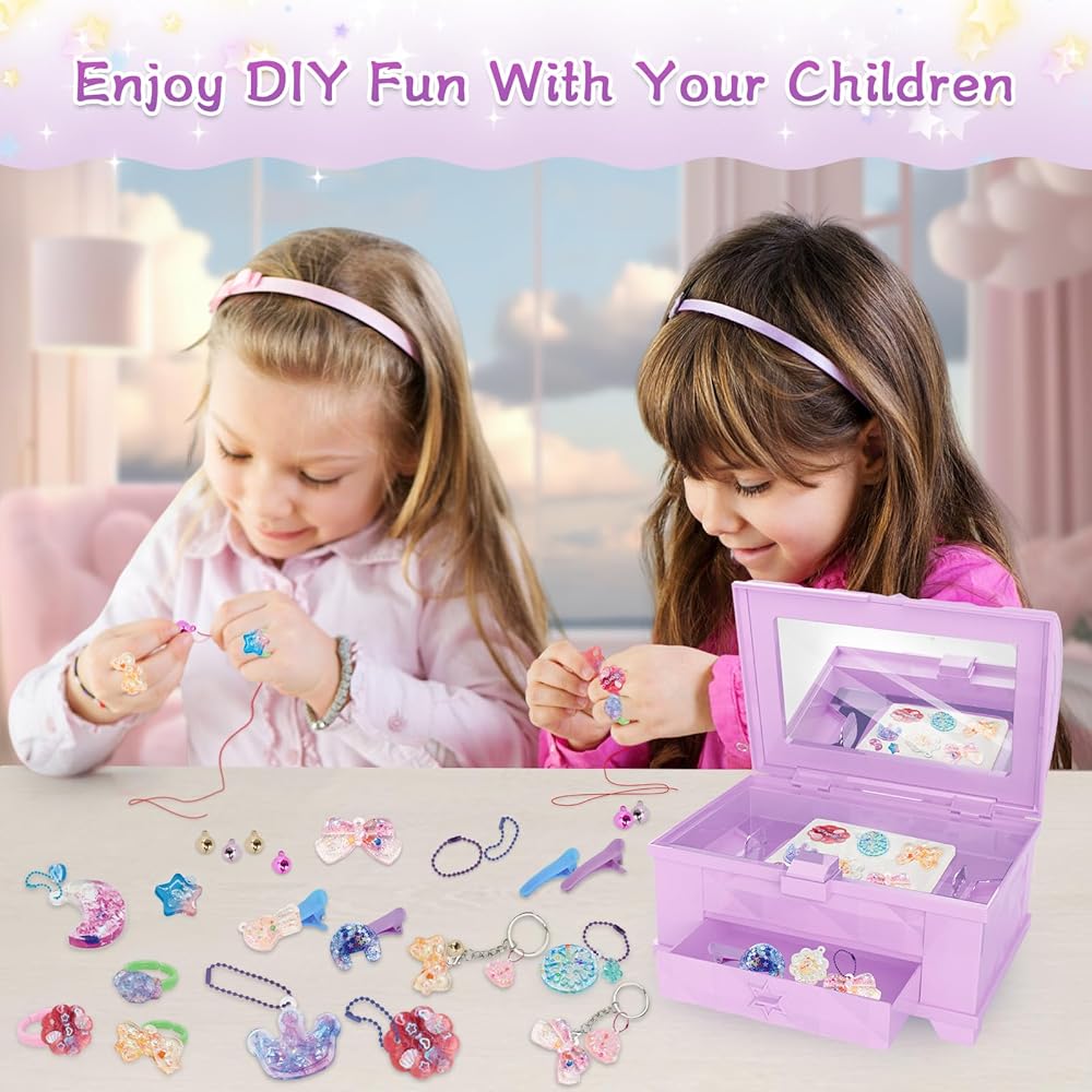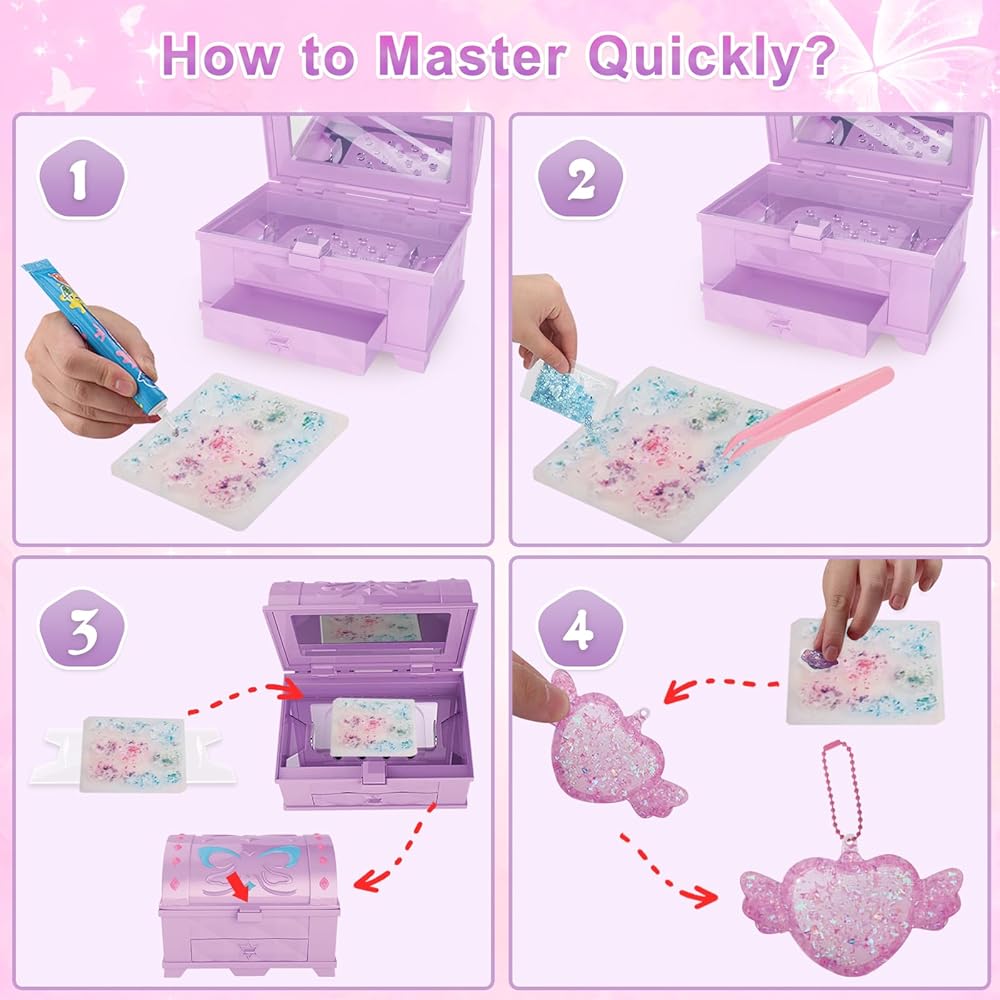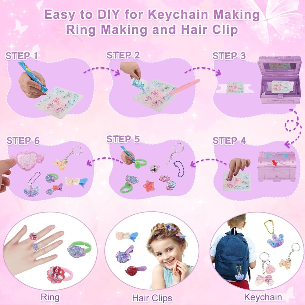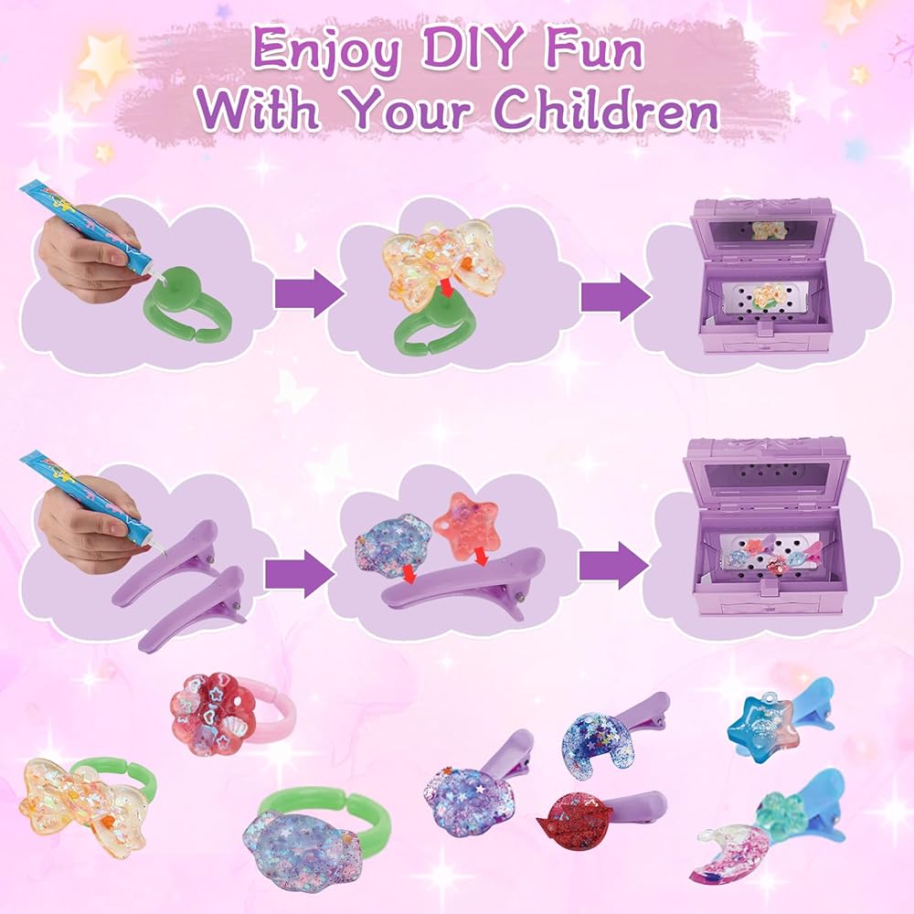ألعاب Mostop للفتيات DIY، مجموعة صنع المجوهرات من الراتنج، مجموعة كاملة من الراتنج والقوالب مع مصباح وموسيقى ترقية، مجموعة سحرية من الجل إلى الأحجار الكريمة للفتيات من عمر 3 4 5 6 سنوات وما فوق، تتضمن قوالب، هدية عيد الميلاد