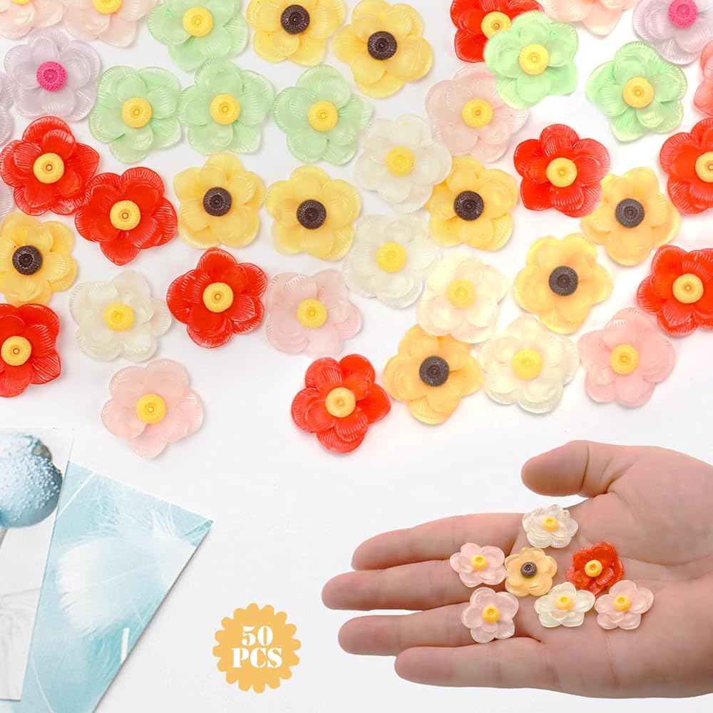 50 قطعة من راتينج زهرة الشمس المسطحة الكبيرة ثلاثية الأبعاد من خرز الزهرة الصغيرة من الراتنج على شكل زهرة كبوشن بألوان مختلطة من راتنج زهرة الأقحوان سحر الوحل لديكور قصاصات القصاصات بنفسك