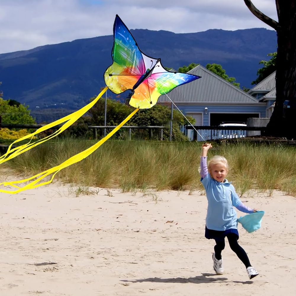 • أفضل تصميم جميل: بفضل ألوانها النابضة بالحياة وتصميمها الفريد، من المؤكد أنها ستلفت الأنظار وتوفر ساعات من الترفيه. طباعتها المثالية متعددة الألوان تجعل هذه الطائرة الورقية ذات الفراشة تبدو نابضة بالحياة وستكون مركز الاهتمام بمجرد صعودها إلى السماء.