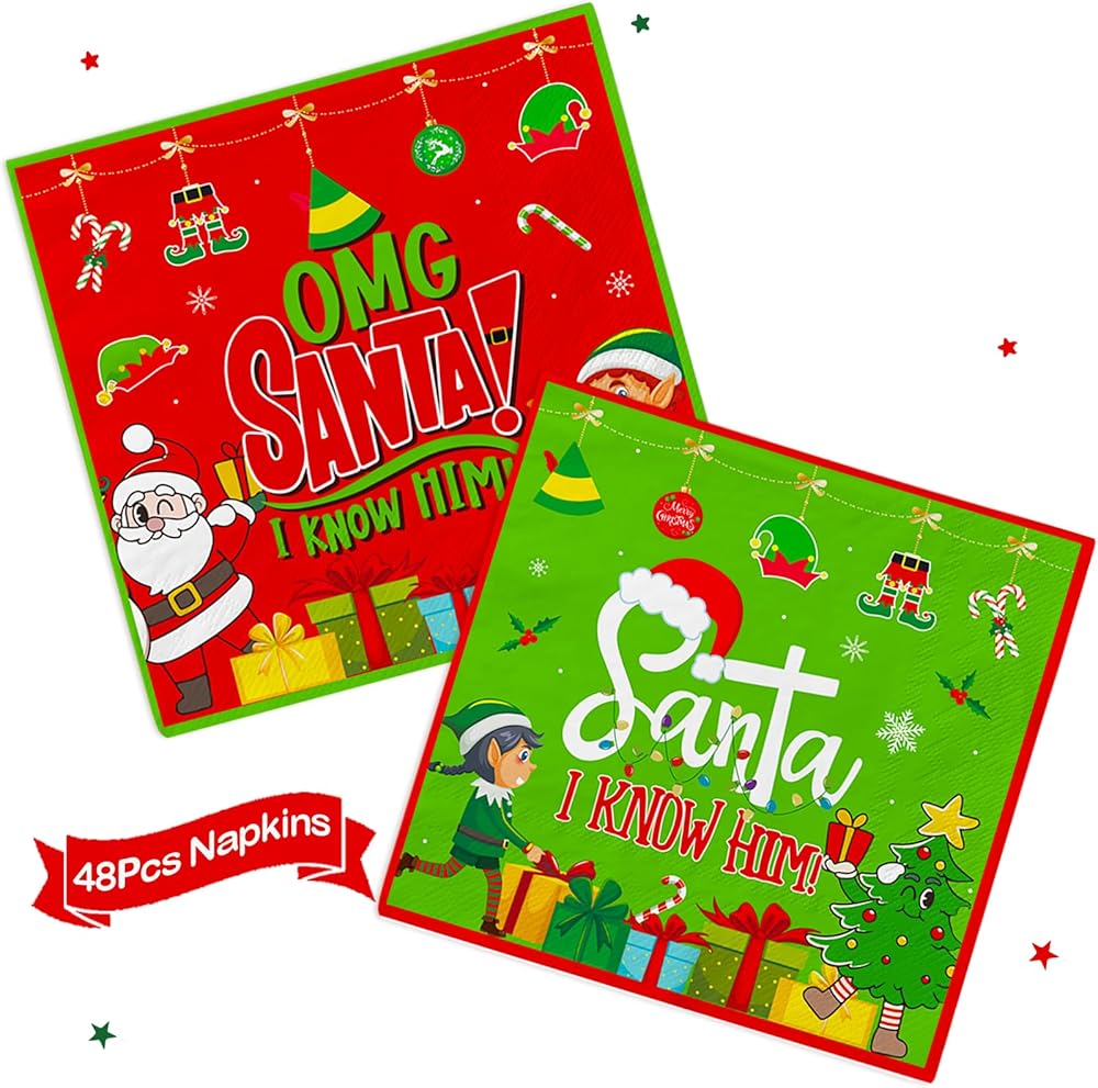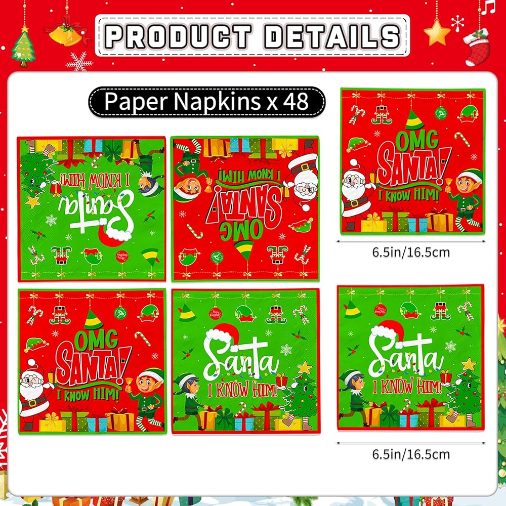 • تشتمل على: سوف تحصل على 48*منديل سانتا لعيد الميلاد، ويوجد تصميمان، كل منها يحتوي على 24 قطعة، مما سيضيف المرح إلى ديكورات الحفلات التي موضوعها أعياد الميلاد.