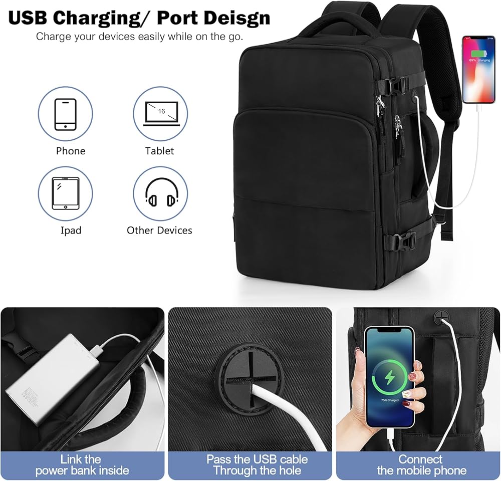 حقيبة ظهر للرجال والنساء، حقيبة ظهر صغيرة سوداء للسفر على متن الطائرة، حقيبة ظهر للحمل في عطلة نهاية الأسبوع، حقيبة ظهر للأغراض الشخصية معتمدة من الطيران