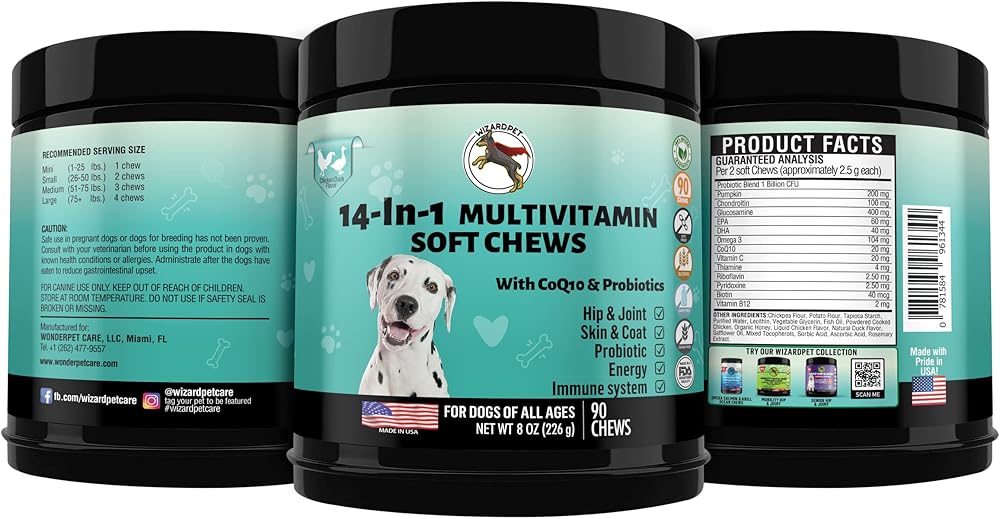 الكل في مضغ واحد: تمتلئ مضغنا الناعم متعدد الفيتامينات بالفيتامينات والمعادن اليومية التي تعزز مناعة كلبك وتدعم عملية الهضم وتعزز صحة الورك والمفاصل. كما أنه يمنع الالتهابات والأوجاع ومشاكل الأمعاء. تأتي هذه الأطعمة القابلة للمضغ بنكهات البط والدجاج الطبيعية