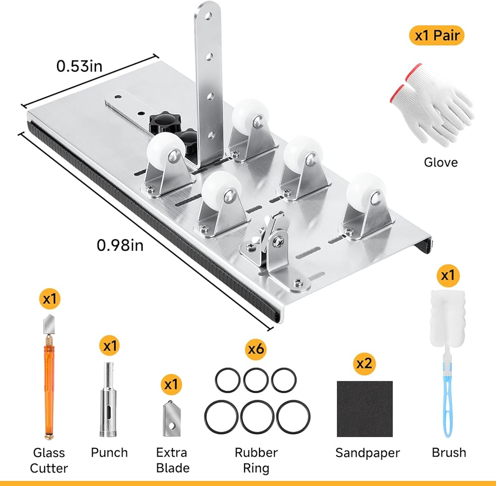 【مجموعة قاطعة الزجاجات الكاملة وقاطعة الزجاج】- سوف تحصل على جميع ملحقات قطاعة الزجاجات التي تحتاجها لاستخدام قاطعة الزجاجات: 1 قاطعة زجاج + 1 قاطعة زجاجية + 1 شفرة قطع احتياطية + 6 حلقات مطاطية تثبيت + 1 كتلة موضع + 2 ورق صنفرة + 1 إسفنجة تنظيف + 1 زوج من القفازات + 1 مثقاب زجاجي + 1 مفك براغي. لا حاجة لإعداد أدوات أخرى. يمكنك قطع الزجاجة بسهولة وأمان