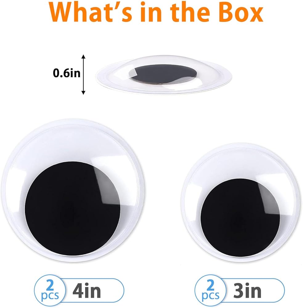 4 Pieces 3D Wiggle Googly Eyes with Self-Adhesive for Robotic Vacuums Cleaner, Air Purifiers (3 in, 4 in)